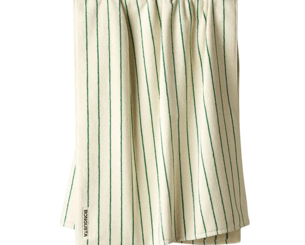 Naram gæstehåndklædet er et luksuriøst håndklæde. Det er lavet af 600 gsm kæmmet bomuld, der er OEKO-TEX® certificeret. Kæmmet bomuld er af en højere, næsten silkeagtig kvalitet, som gør håndklædet mere farveægte og lækkert. Den dobbelt-trådede vævning og de ekstra lange bomuldsfibre gør håndklædet meget absorberende, holdbart og åh-så blødt. Naram gæstehåndklædet er ikke kun praktisk, det er også stilsikkert. Med et bredt udvalg af smukke farver og klassiske striber kan du vælge lige det, der passer bedst til din personlige stil eller boligindretning. Det dekorative, broderede Bongusta brand-logo tilføjer et elegant touch til designet. Den tykke frottéoverflade sikrer en blød og behagelig følelse mod huden. Håndklædet har en smart løkke, der gør det nemt at hænge det op. Uanset om Naram gæstehåndklædet er til personlig brug eller tiltænkt som en gave, tilbyder det en luksuriøs oplevelse og spa-lignende blødhed.