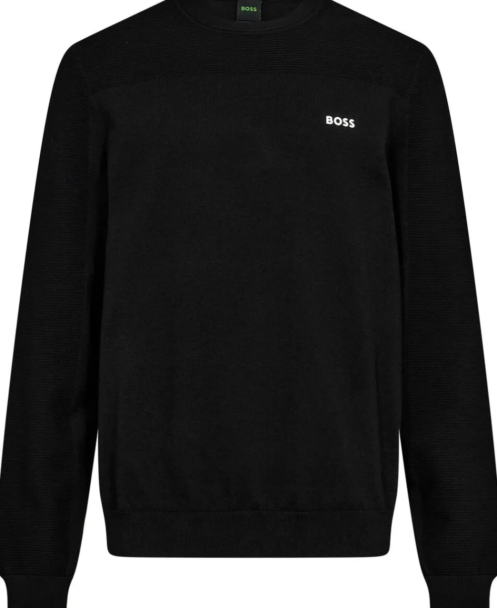 Denne BOSS herretøj-sweater i almindelig pasform er blandet med merinould og stræk for ekstra komfort for åndbar varme med bevægelseskomfort. Den har også fugtstyring og strukturerede blokeringsdetaljer