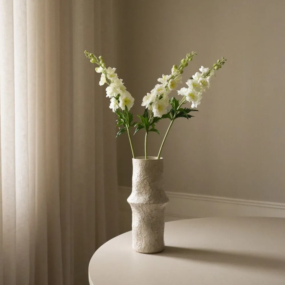 Delphiniums er kendt for deres tårnhøje spir af kronblade, og vores kunstige fortolkning indfanger denne majestætiske skønhed i livagtige detaljer. Med sin aflange stilk og rigelige blomster er Delphinium det perfekte buketelement, der giver højde og fylde til dine arrangementer. Med sin klassiske grønne og hvide farve blander blomsten sig problemfrit med minimalistiske og skandinaviske Designsensibiliteter, hvilket gør dem til det ideelle valg for dem, der sætter pris på enkelhed og raffinement i deres blomsterindretning.