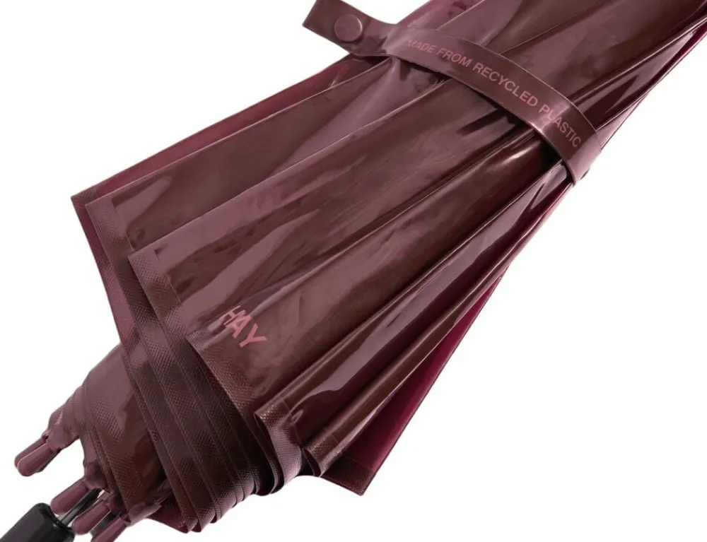 Made with functionality and aesthetics in mind, HAYs Canopy Umbrella features a water-resistant shade with a curved handle in a minimalistic, colour-coordinated design. The shade is made of 100% recycled POE, while the handle and tip are crafted from 100% recycled PP, ensuring optimal protection from outdoor elements while keeping you dry in style. Available in clear and coloured variants.