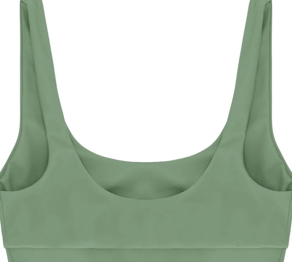Agung bikini top har et sporty dog feminint snit med en klassisk rund hals- og rygudskæring. Den brede elastikkant giver ultimativ støtte under barmen og Agung er derfor populær blandt både små og større barme. Designet klæder alle størrelser, og gør den samtidig til et alsidigt produkt, du kan bruge som bikini top, sports-bh og endda crop-top. Agung er syet med 2-lags stof af høj kvalitet, som føles fantastisk, er åndbart mod huden og samtidig støtter alle de rigtige steder. Produktet er skabt af ECONYL® regenereret nylon blandet med elastan.