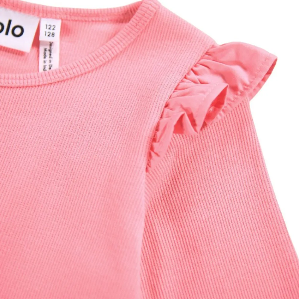 Denne langærmede kjole fra Molo er lavet af økologisk bomuld og har en tætsiddende ribbet jerseytop med rund hals. Kjolen har en lille flæse ved skuldrene og et skørt i dobbeltlag bomuldspoplin, der tilføjer masser af fylde.