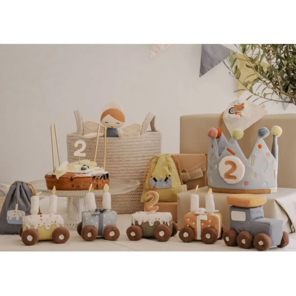 Birthday Train Blue Mix fra Fabelab gør fødselsdagsbordet ekstra festligt. I rolige blå nuancer kommer det fine trætog med glade figurer, lysholder og tal fra 1-9. Et tidløst indslag, der kan bruges år efter år til at fejre livet og dets små store øjeblikke. Anbefalet alder: 12m+ EU – legetøjssikkerhedsstandard CE