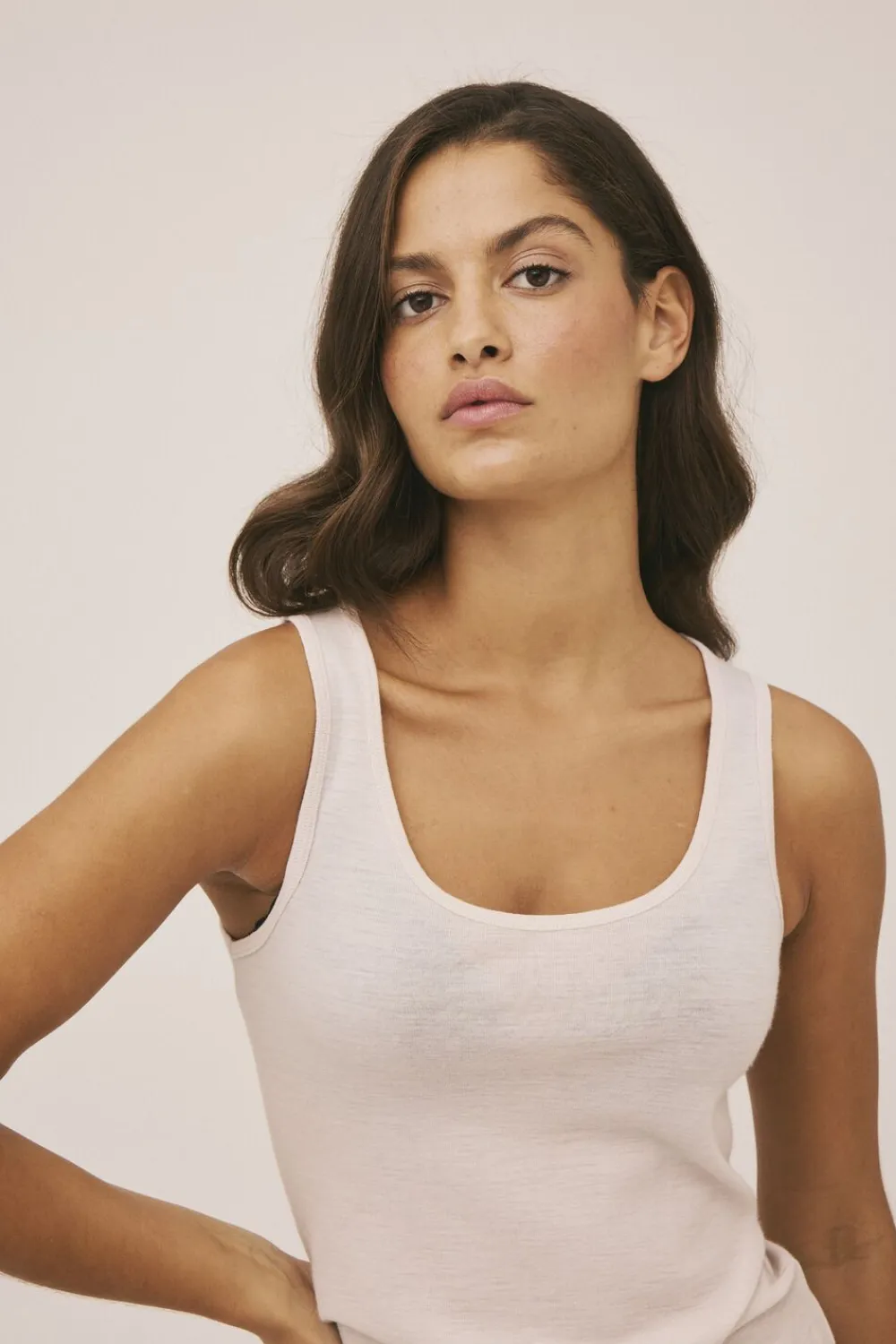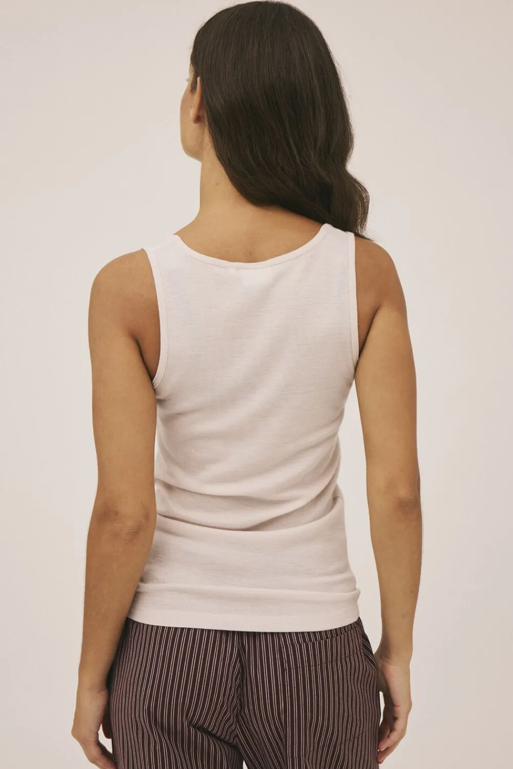 Top fra Magasin du Nord Collection i den blødeste kvalitet af 100% uld med RWS- og OEKO-TEX® STANDARD 100-certificering. Toppen er enkel i modellen med brede skulderstropper, en smal ribkant i den runde halsudskæring samt en komfortabel, tætsiddende pasform. En skøn top i den absolut lækreste kvalitet.