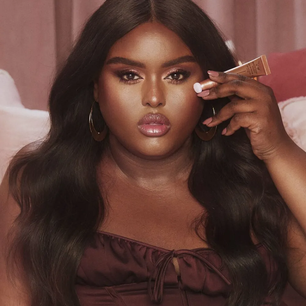 Pillow Talk Medium Deep kombinerer Charlottes berømte Beauty Light Wands med den ikoniske Pillow Talk-nuance for at opnå en drømmeagtig ferskenrosa highlighter-effekt.