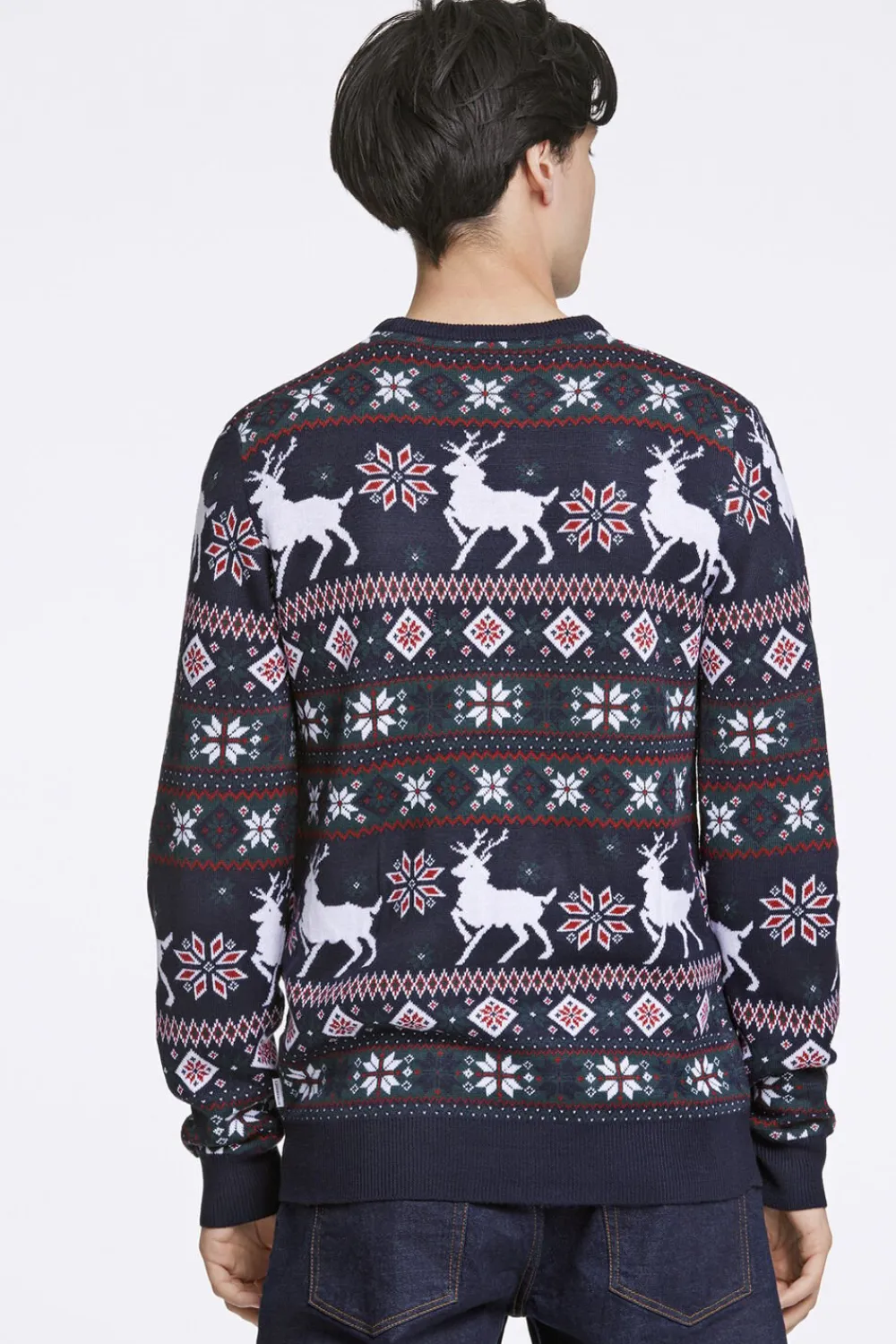 Julestriktrøje fra Lindbergh. Trøjen har hyggeligt julemønster på for- og bagside og rund hals. Logomærke nederst på venstre side.