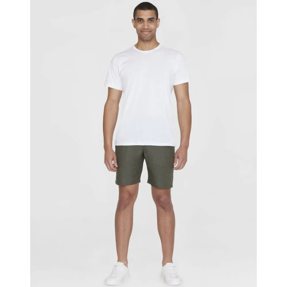 CHUCK-linnedshortsene er et bevidst valg og en fantastisk ledsager gennem den solrige sæson. De har en almindelig pasform og er lavet af 100% økologisk hør for at holde dig kølig og komfortabel hele dagen lang. Shortsene har bæltestropper i taljen, skrå forlommer og baglommer.