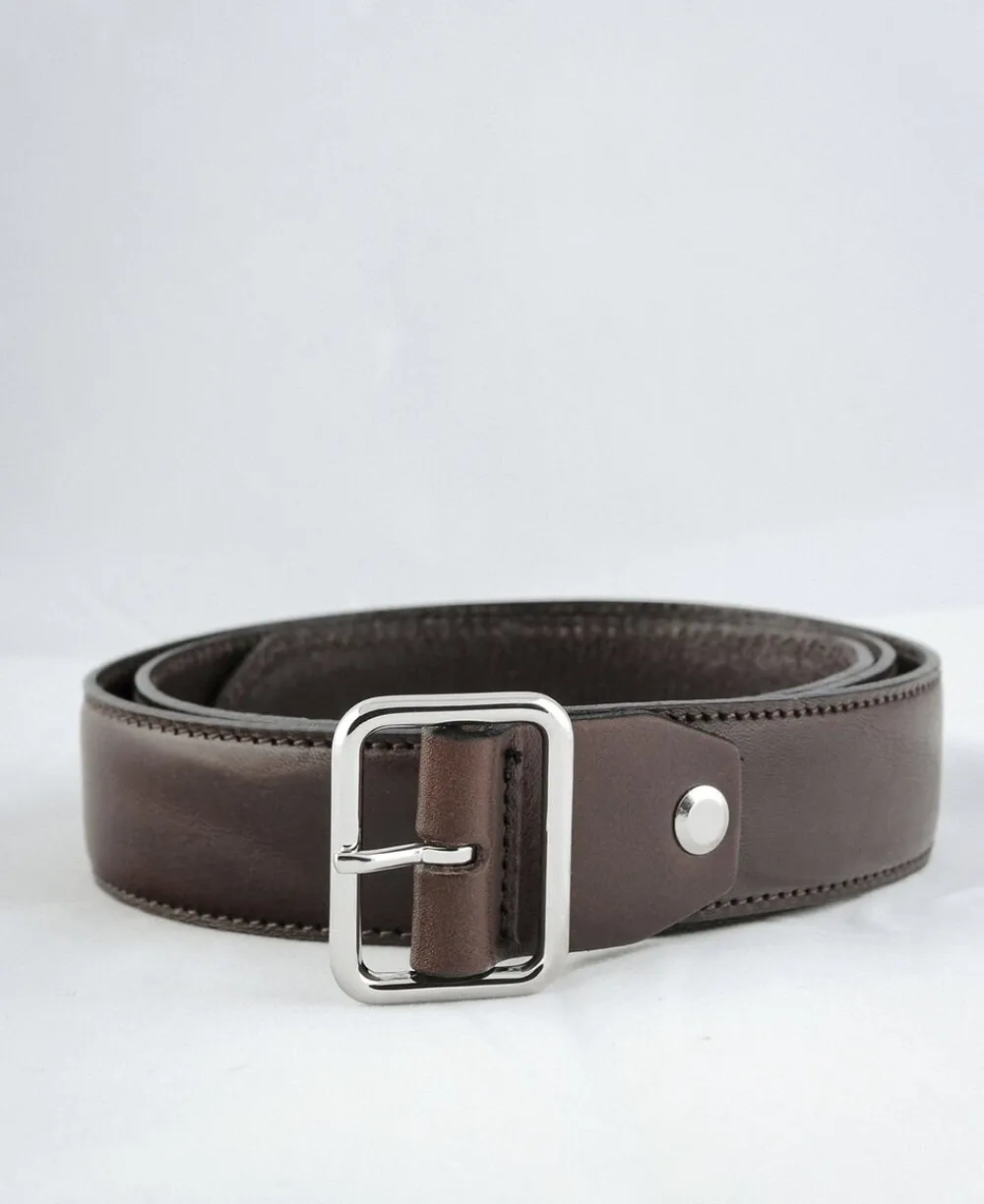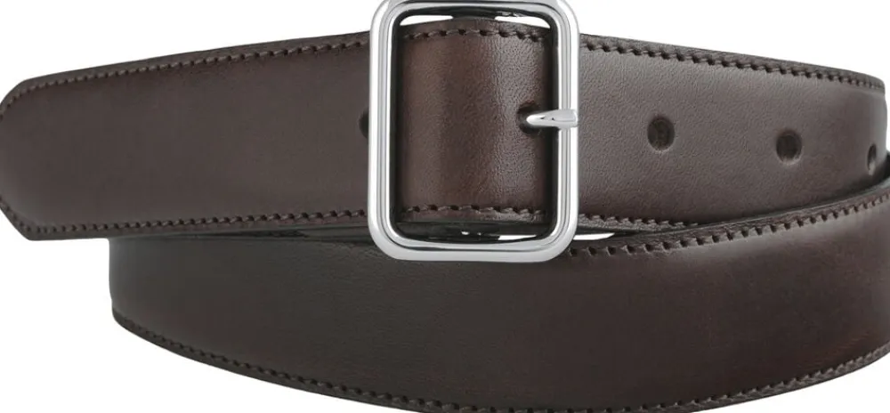 Et raffineret bælte med smalt helspænde. Bæltet er produceret i Danmark i to lag LWG-certificeret narvlæder og kommer med kraftige stikninger langs kanterne på bæltet.