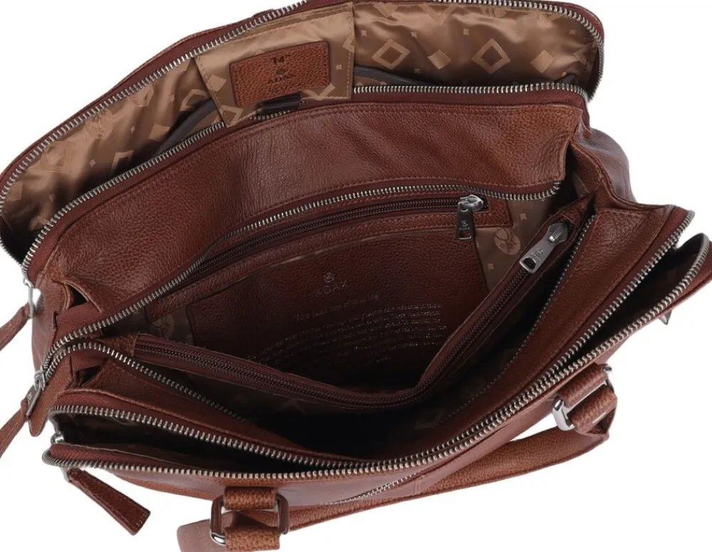 Gerda jobtaske i Napoli skind fra Adax. Tasken har to lange hanke. Tasken lukkes i toppen og på fronten er der en stor lynlåslomme. Tasken er delt op i 3 rum med hver deres lynlås der er god plads i de forskellige rum. Der er bla. en lynlåslomme, en læderlomme til en mobil samt foret lomme til PC og en tablet.