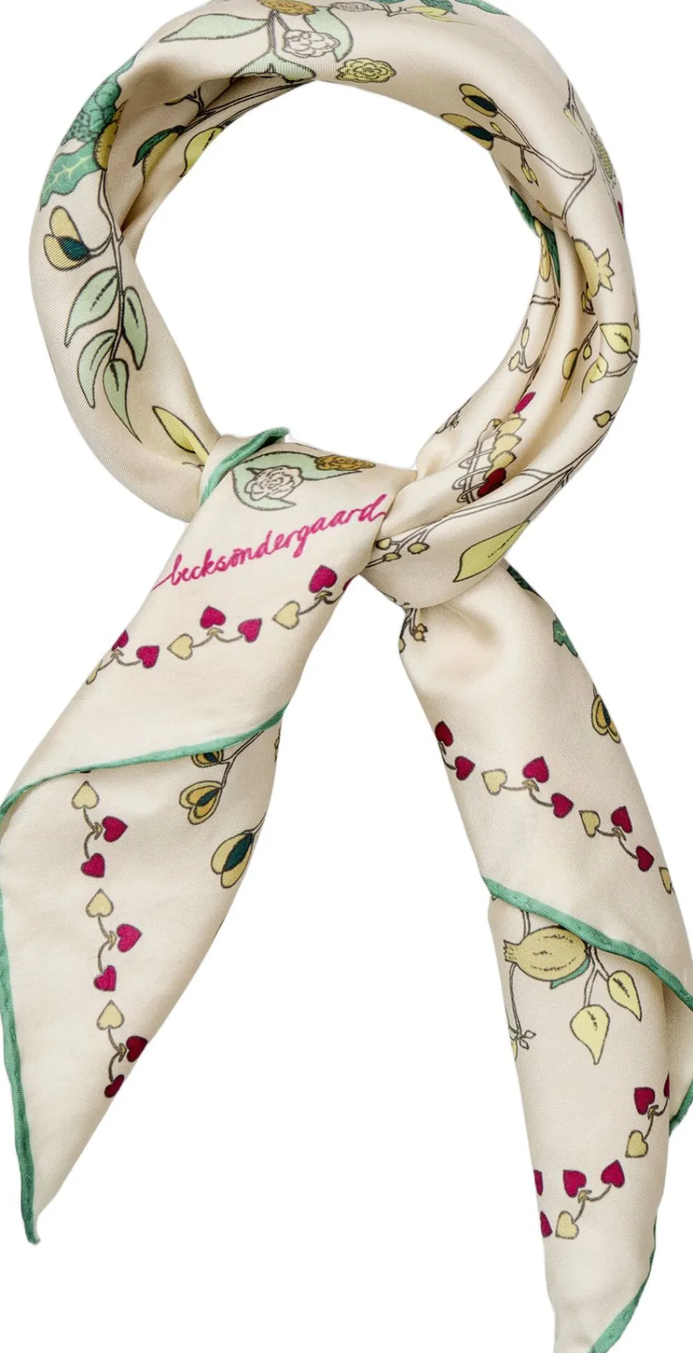 Fairygard Sia Scarf designet af Becksöndergaard er lavet af 100% silke og måler 65 x 65 cm. Tørklædet har et smukt blomstermønster og tilføjer et elegant touch til ethvert outfit. Perfekt til at fuldende dit look, uanset om det bæres om halsen, i bæltestroppen eller som pynt på din taske.