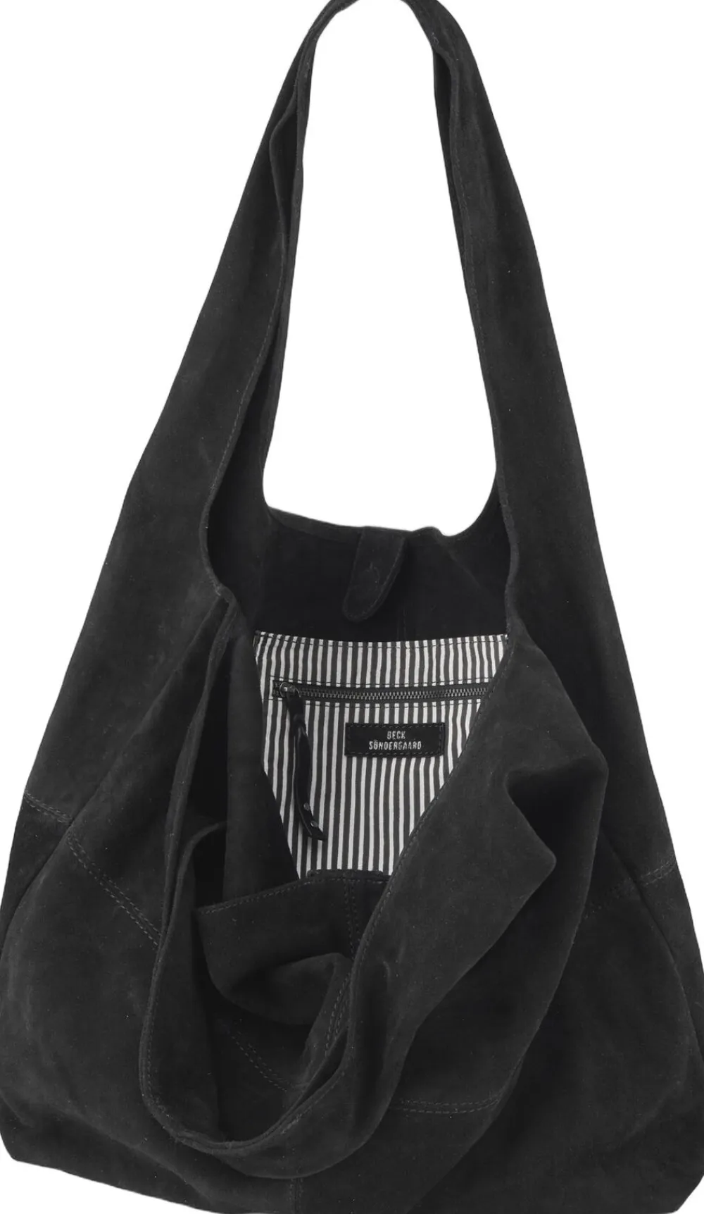 Suede Dalliea Bag designet af Becksöndergaard er en rummelig shopper taske, idealisk til hverdagsbrug. Den indeholder et stort rum, med en indvendig lynlåslomme, og lukker med en magnetisk knap. Den er designet i 100% ruskind og måler 40 x 40 cm. Tasken kan bæres både på skulderen eller i hånden. Obs: Vær opmærksom på, at ruskind er et naturmateriale der kan nulre af på andre materialer, men dette kan fjernes med en fnugfjerner.