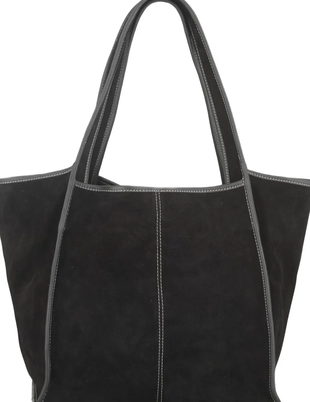 Suede Laurel Bag designet af Becksöndergaard er en rummelig shopper taske, idealisk til hverdagsbrug. Den indeholder et stort rum, med en indvendig lynlåslomme, og lukkes med en hook and eye i toppen. Den er designet i 100% ruskind og måler 34 x 30 cm. Tasken kan bæres både på skulderen eller i hånden. Obs: Vær opmærksom på, at ruskind er et naturmateriale og kan fnuldre af, på andre materialer. Dette kan fjernes med en fnugfjerner.