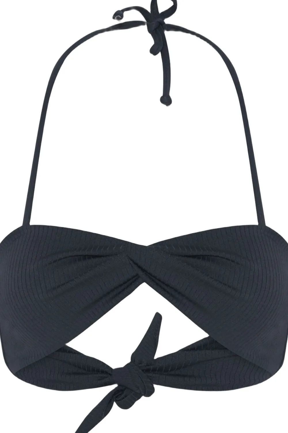 Charlotta bikinitoppen i sort rib er en smuk kombination af tekstur og enkelthed. Den bløde, ribbede kvalitet føles behagelig mod huden og følger kroppen uden at stramme. Med sin feminine twist-detalje og justerbare bindelukning er den både afslappet og elegant perfekt til stille dage ved havet.