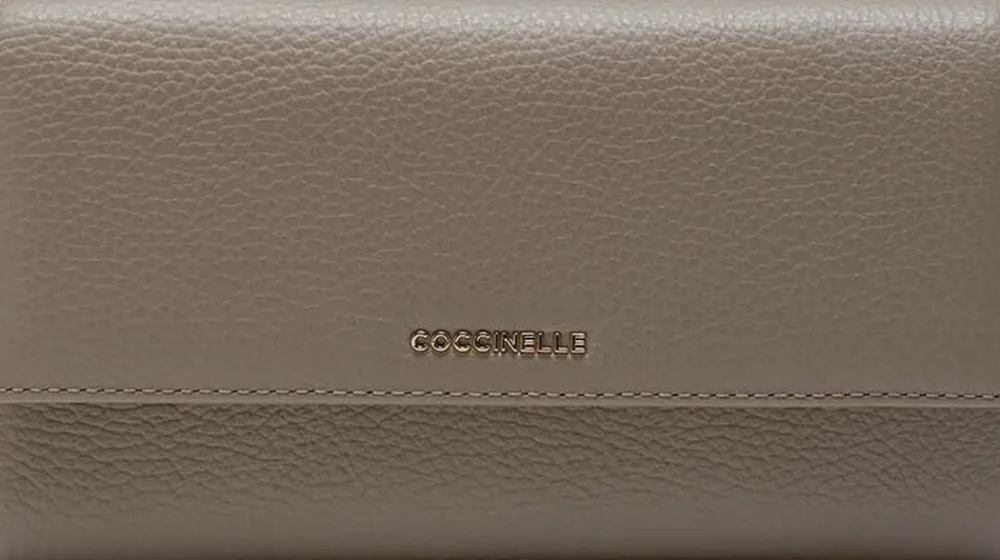 Smart minibag-wallet fra Coccinelle. Tasken/pungen lukkes med trykknap. Indvendigt er der 2 rum. I det ene rum er der f.eks. plads til en mobiltelefon. I det andet rum er der 8 rum til kort. Desuden lynlåsrum med plads til f.eks. mønter, nøgler el.l. Aftagelig, justerbar skulderrem i skind