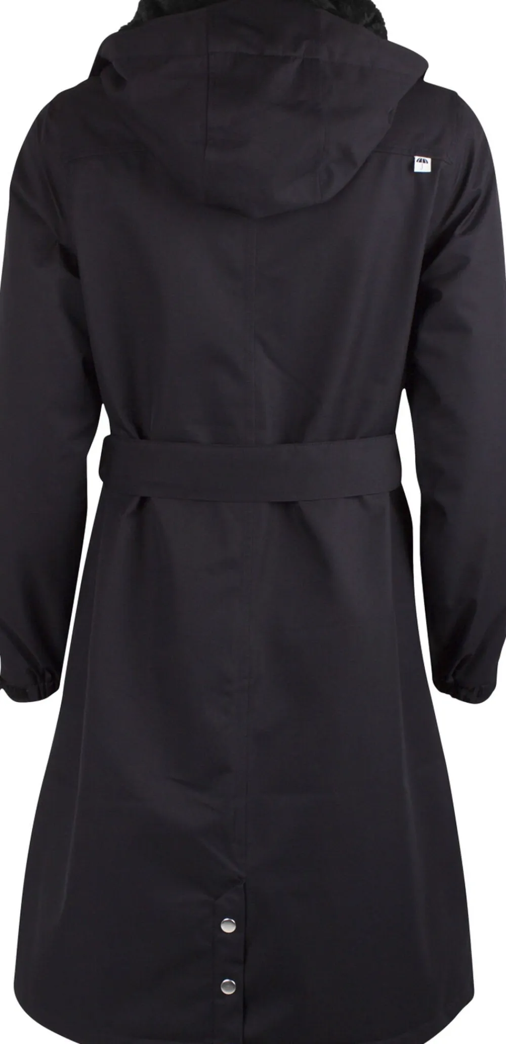 Bornholm er en ny flot foret regnfrakke, der er perfekt til kolde våde vinterdage. Regnfrakken er lavet i den flotte farve sort og er en lidt længere model med bindebælte til at markere taljen. Regnfrakken har aftagelig hætte og indeni er den foret med et skønt mørkt fuzzyfor ved bryst, ryg og i hætten. Foran har regnfrakken to skrålommer, der lukkes med trykknapper og skjult lynlås. Sølvfarvede trykknapper og ved håndleddet er der velcro til at justere for perfekt pasform. Bagpå har jakken forneden tre trykknapper i sølv. Regnfrakken har et søjletryk på 8.000 mm, hvilket betyder den er meget vandtæt, og har tapede sømme. En helt igennem lækker foret regnjakke, der er både er til at ånde i men også at holde sig tør i. Flourfri coating (Bionic Finish), åndbar og vindtæt.