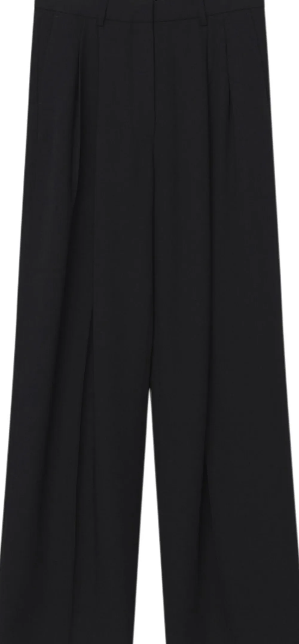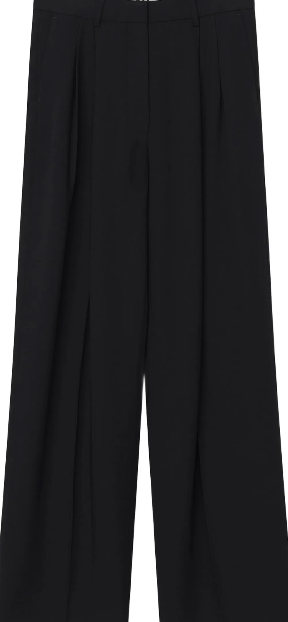 Disse bukser med høj talje og brede ben har læg i taljen, lynlåslukning med kroglukning og sidelommer. Der er en Single lomme bagpå. Disse bukser har en almindelig pasform
