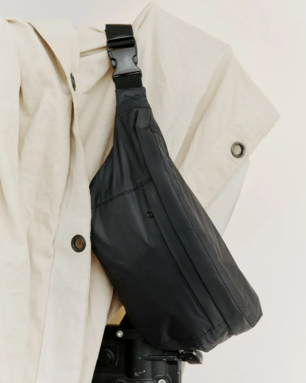 Denne bum-taske er designet med vandtæt materiale og kan modstå et vandsøjletryk på 2100 mm. Den har også en vandtæt lynlås. Både yderstoffet og inderforet er lavet af 100% certificeret Recycled. Tasken har lynlåslukning og har både en indvendig og udvendig lomme. Remmen er justerbar og har et spænde, der giver mulighed for tilpasning til dine behov. Tasken kan bæres enten på tværs af kroppen eller omkring hofterne