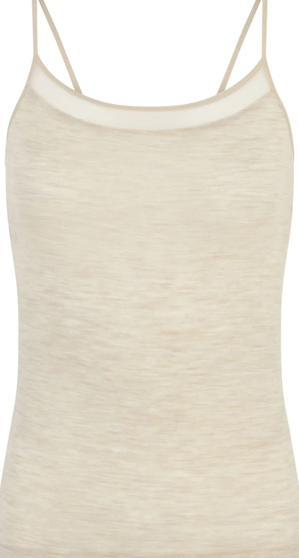 Chemise top med smalle stropper i et simpelt og moderne design. Toppen har en feminin og elegant meshkant i udskæringen. Serien er produceret i 100% merino-uld, som varmer kroppen i koldt vejr og køler i varmt vejr.