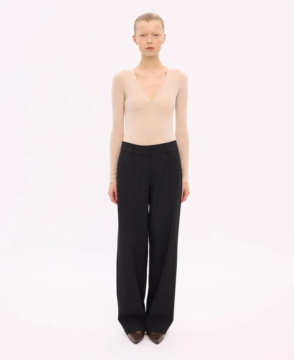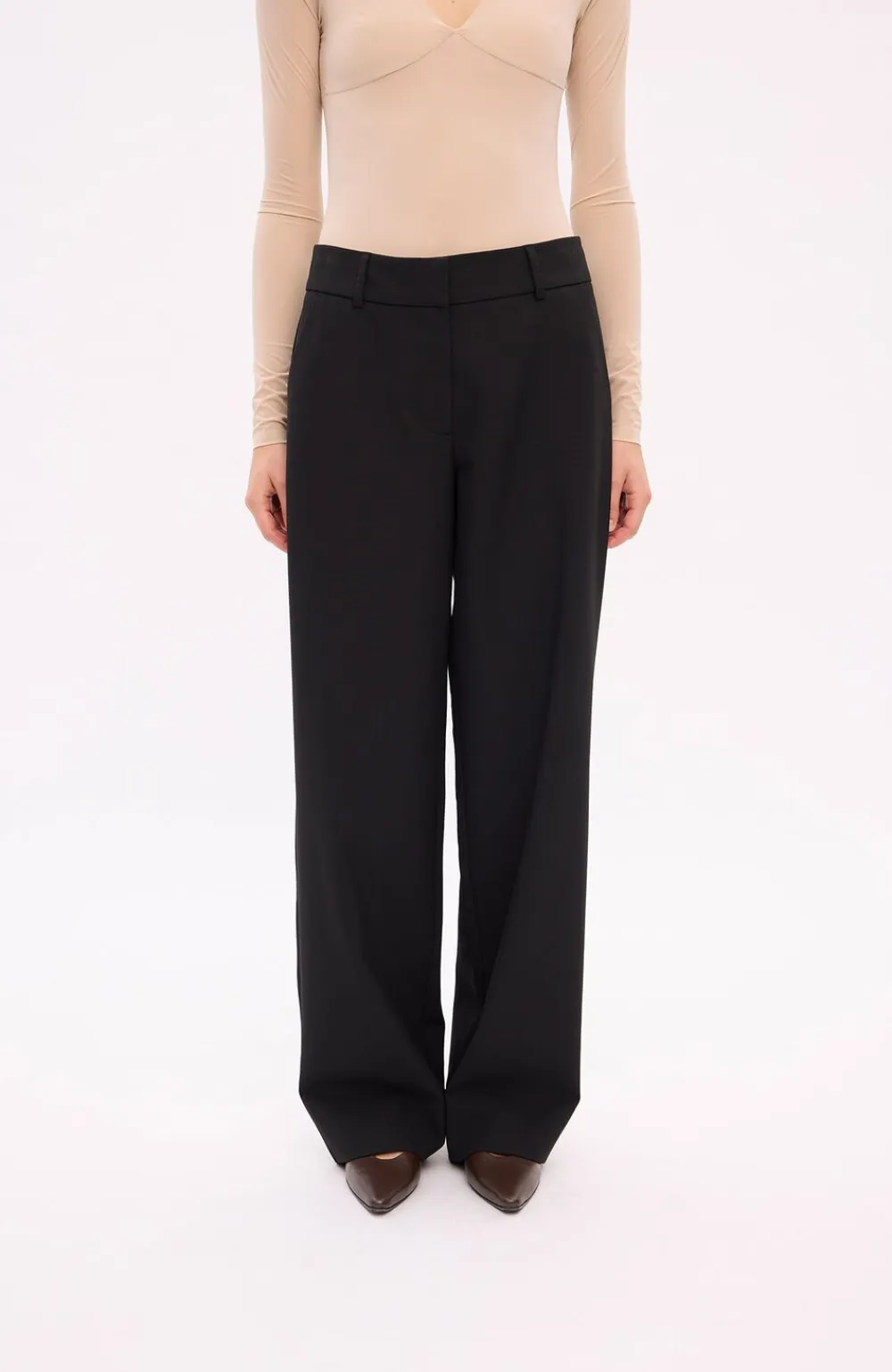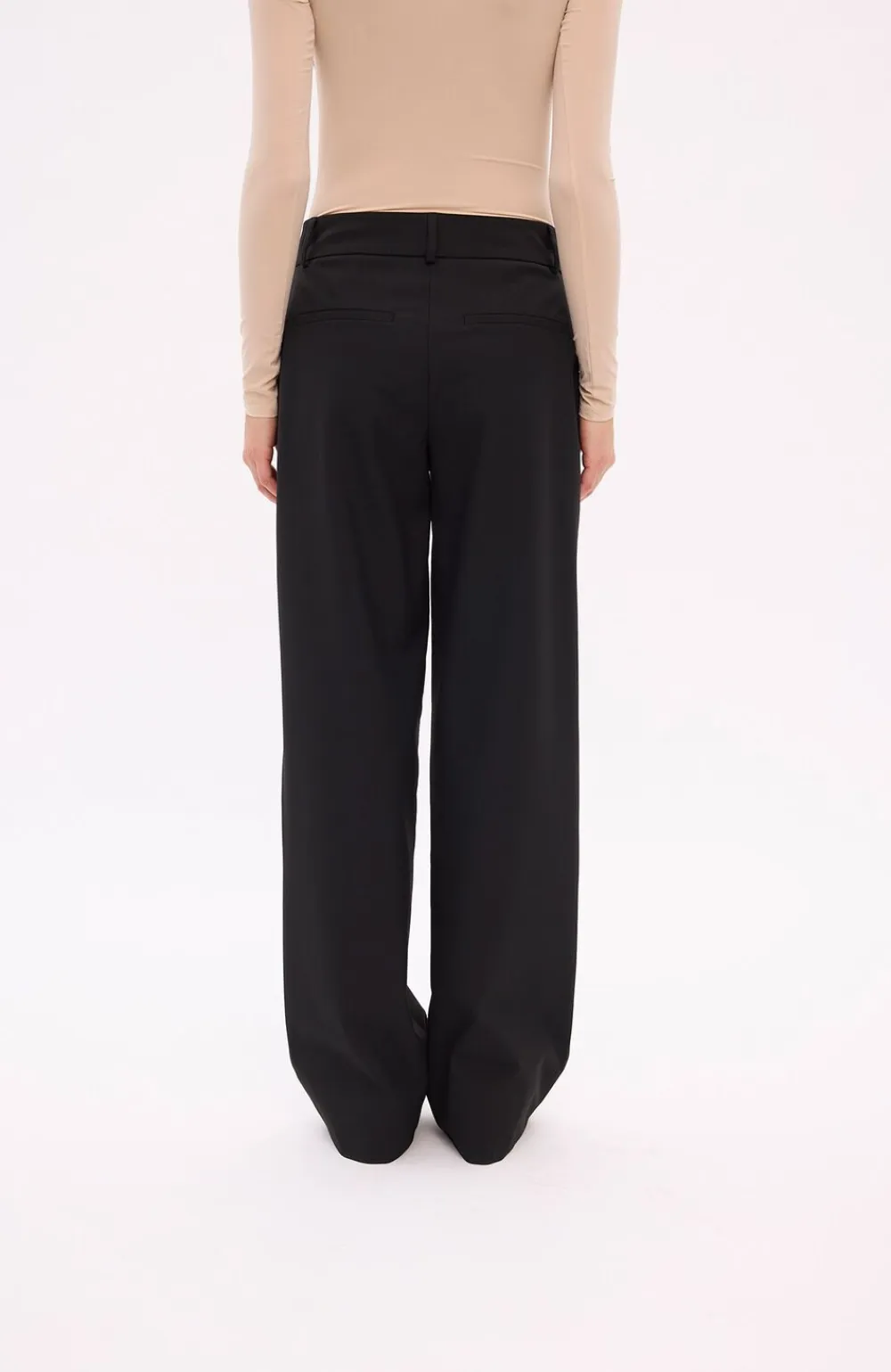 • Elegant design: Bukserne har et vidt design, der giver et moderne og sofistikeret look. De har sidelommer og antydningen af baglommer, samt en skjult knap- og lynlåslukning på fronten.