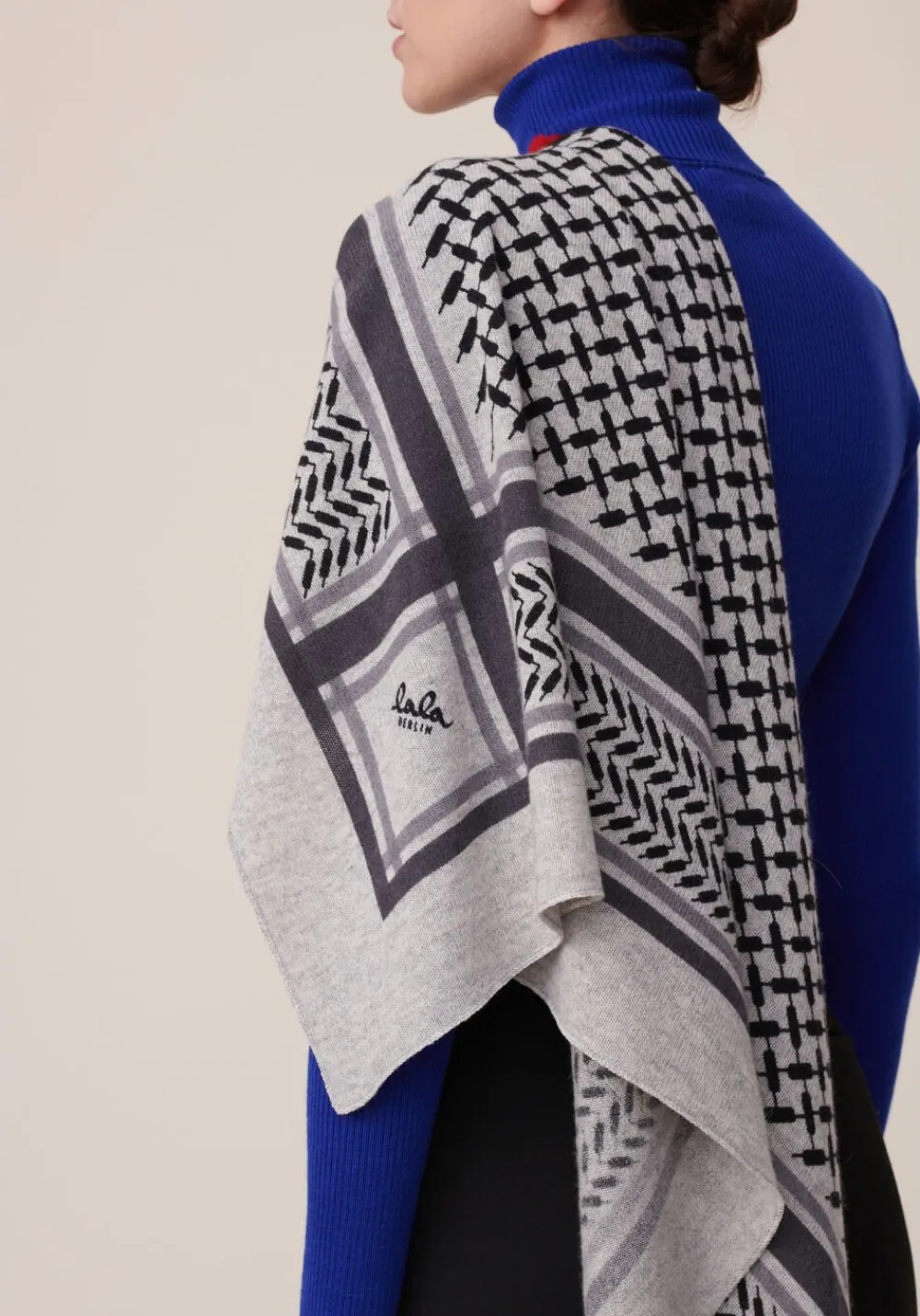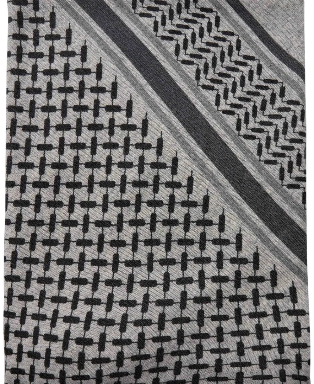 Et luksuriøst blødt, trekantformet cashmere tørklæde med et klassisk sort Kufiya-print.
