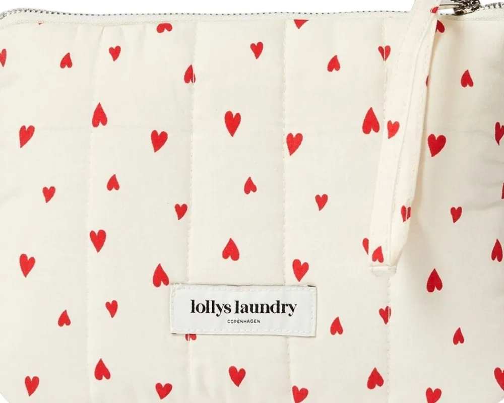Mød MiaLL den sødeste quiltede taske, du nogensinde kommer til at eje. Perfekt til at opbevare dine vigtigste ting på ét sted, uanset om du er på vej ud af døren eller organiserer din indkøbstaske. Det bløde bomuldsstof, det søde hjertetryk og den praktiske håndledsrem gør det til din nye hverdagsfavorit. Brug den til Makeup, nøgler, lille teknologi eller hvad du har brug for på farten. Fås i to farvekombinationer: rødt hjerte og blåt hjerte. — Mål- Bredde- 22cm / Højde- 16cm