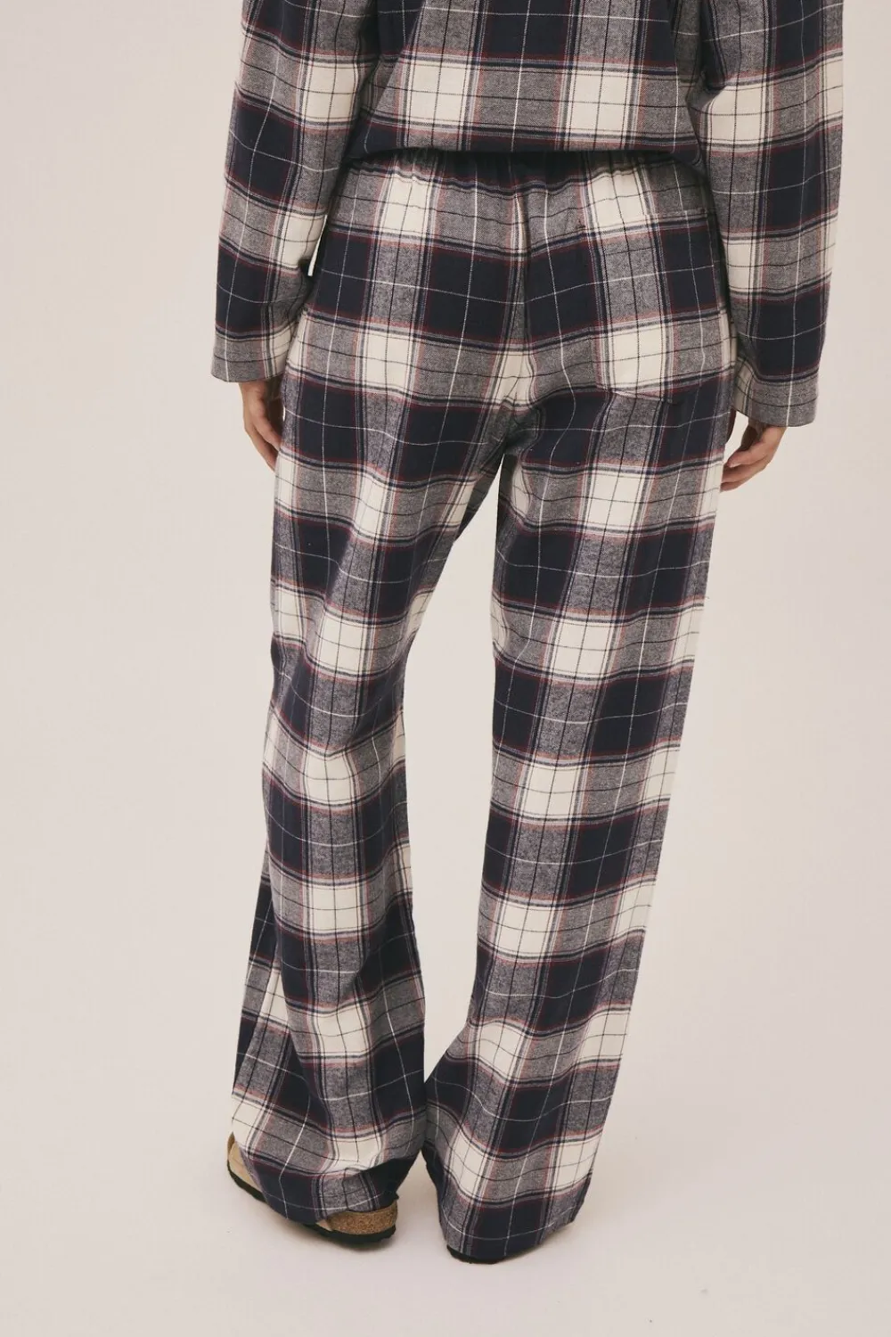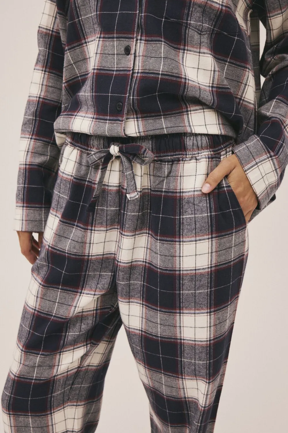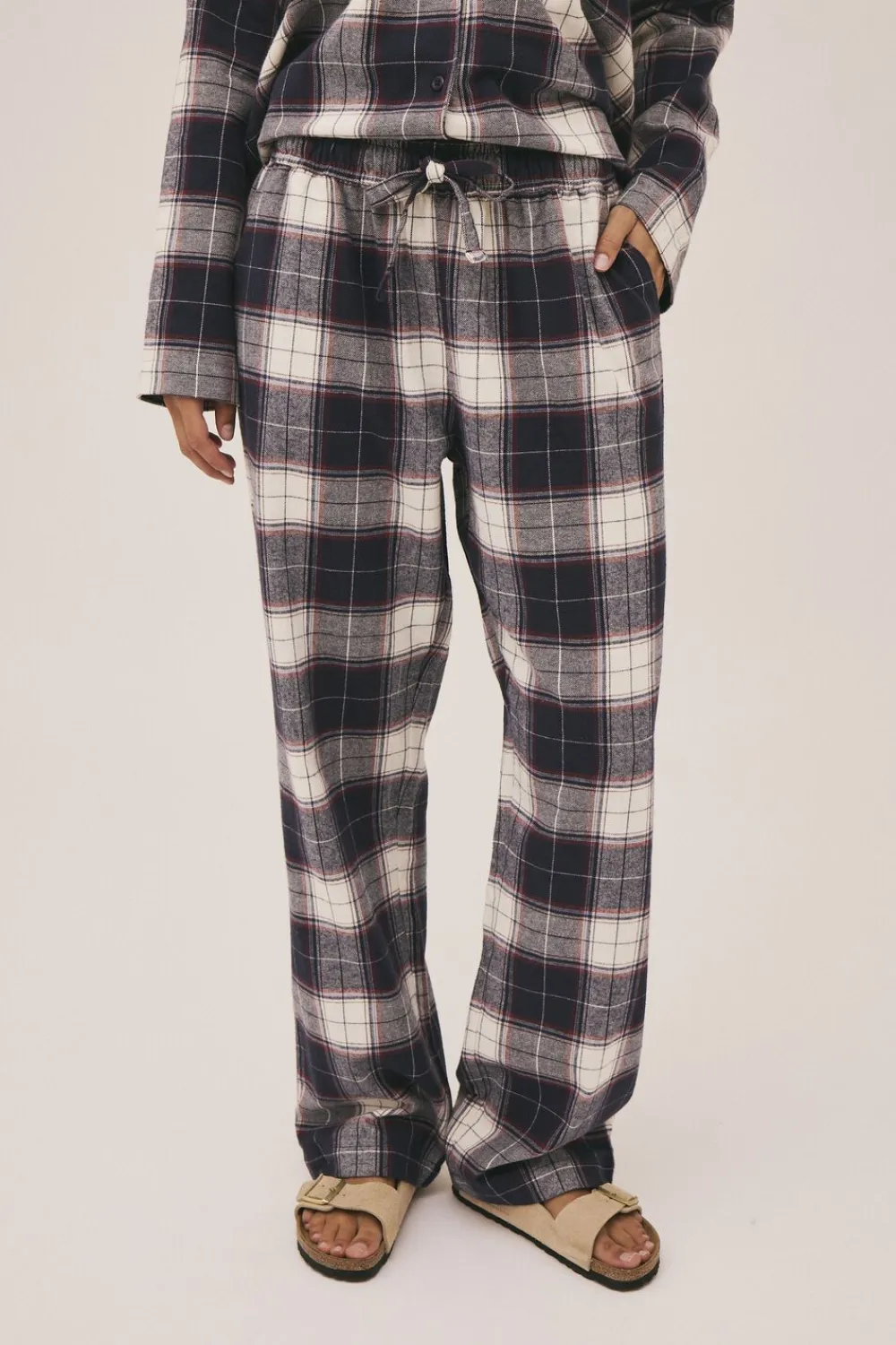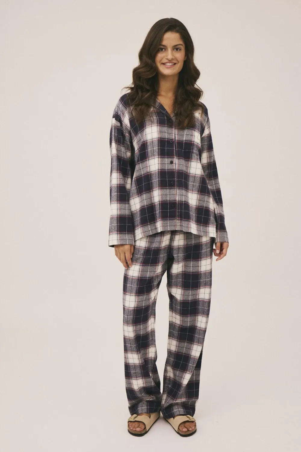 Pyjamasbukser fra Magasin du Nord Collection i den blødeste kvalitet af 100% økologisk bomuld med GOTS-certificering. Bukserne er enkle i modellen med det fineste, ternede print, elastik og snøre i taljen, sidelommer, en enkelt baglomme samt en løs pasform. Et par skønne pyjamasbukser i den absolut lækreste kvalitet.