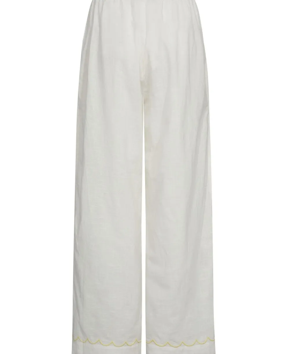 Bukser fra Magasin du Nord Collection i den blødeste kvalitet af 100% økologisk bomuld med GOTS-certificering. Bukserne har de fineste, broderede blomster, elastik og snøre i taljen, sidelommer, en løs pasform samt lige bukseben med elegante piping-detaljer i bunden. Et par skønne bukser i en let kvalitet. Se også de andre fine styles i samme serie.