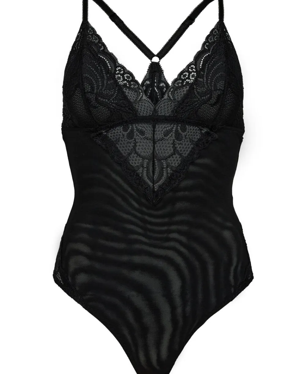 Bodystocking fra Magasin du Nord Collection i en smuk mesh- og blondekvalitet. Bodystockingen er enkel i modellen med trekantede skåle, smalle, justerbare skulderstropper, der samles på ryggen samt trykknapper i kilen. En skøn bodystocking i den lækreste kvalitet. Se også de andre fine styles i Fleur-serien.