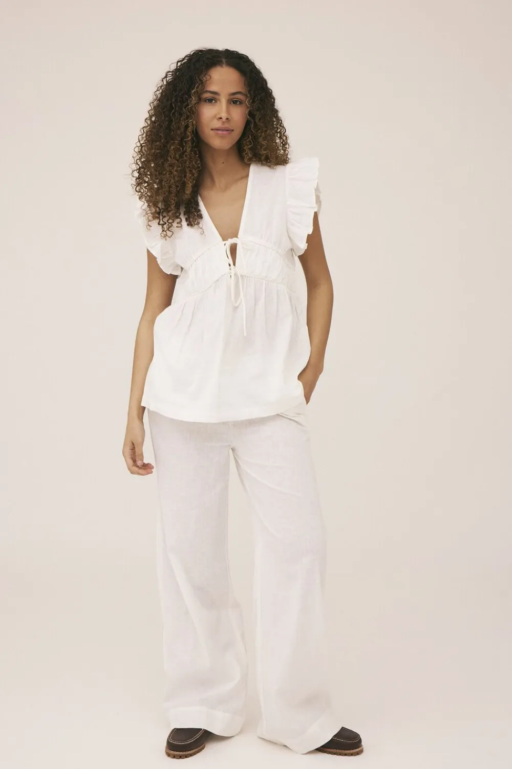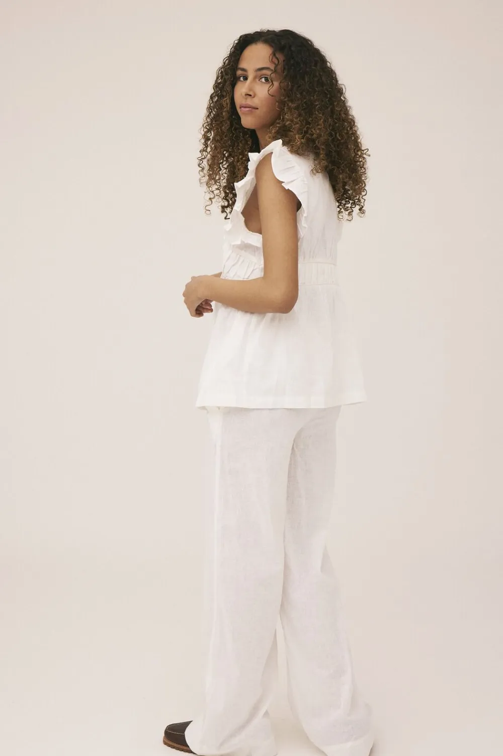 Bukser fra Magasin du Nord Collection i den blødeste kvalitet af bomuld og hør med OEKO-TEX® STANDARD 100-certificering. Bukserne er enkle i modellen med en løs pasform, elastik i taljen, sidelommer samt lige ben. Et par skønne bukser i en lækker kvalitet.