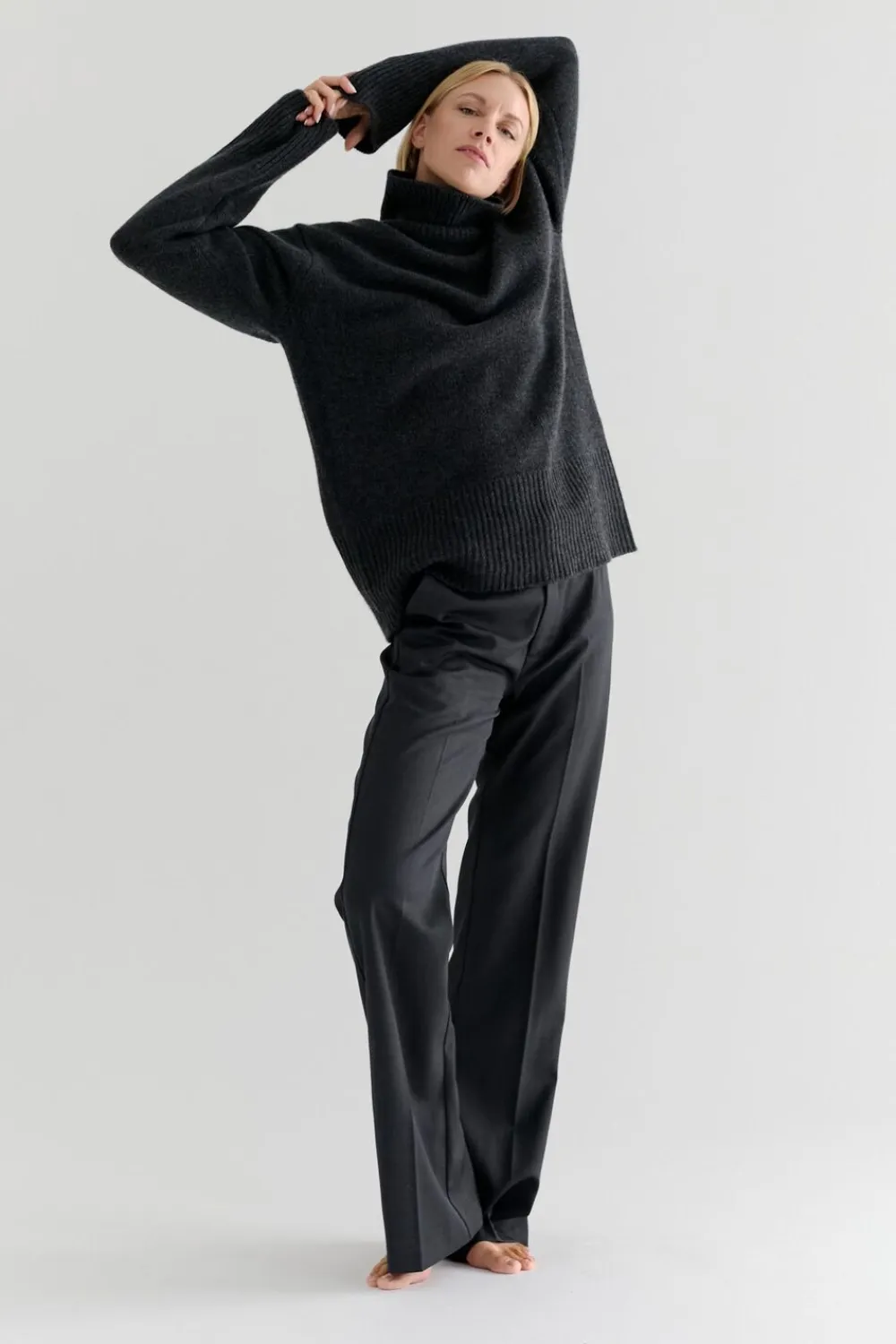 Strikket sweater fra Magasin du Nord Collection i en blød og kraftig kvalitet af 100% cashmere med OEKO-TEX® STANDARD 100-certificering, skabt i et særligt samarbejde mellem kreativ konsulent Hanna Stefansson og Magasin du Nord. Sweateren er enkel i modellen med en ribstrikket rullekrave samt lange ærmer med ‘drop shoulders’, der understreger den lige silhuet. En casual sweater i den absolut bedste kvalitet.