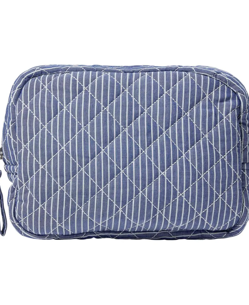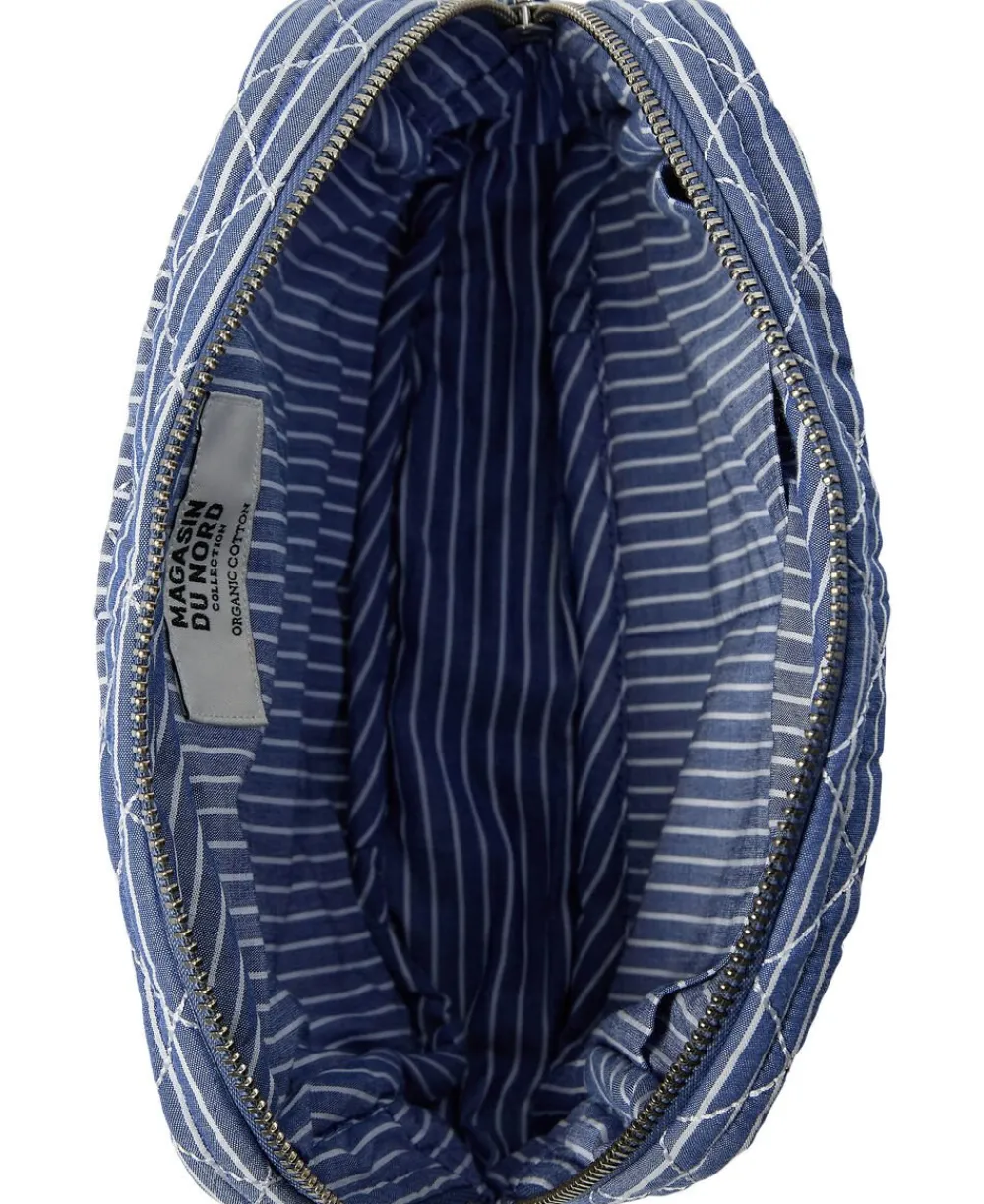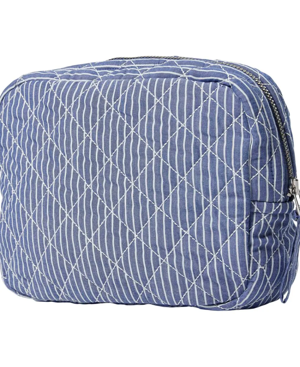 Toilettaske fra Magasin du Nord Collection i den blødeste kvalitet af 80% økologisk bomuld med GOTS-certificering. Toilettasken består af ét stort rum med lynlåslukning samt mindre inderlommer. Derudover har toilettasken fine vatterede syningsdetaljer og et stribet print. En skøn toilettaske i den lækreste kvalitet.