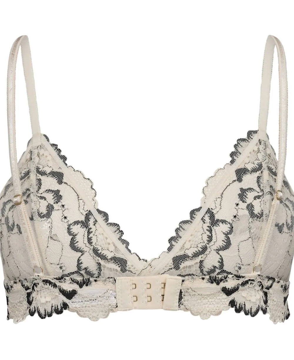 BH fra Magasin du Nord Collection i en smuk blondekvalitet. BH’en er enkel i modellen med trekantede skåle, smalle, justerbare skulderstropper, hægtelukning på ryggen samt en smal elastikkant under skålene. En skøn BH i den lækreste kvalitet. Se også de andre fine styles i Ruby-serien.
