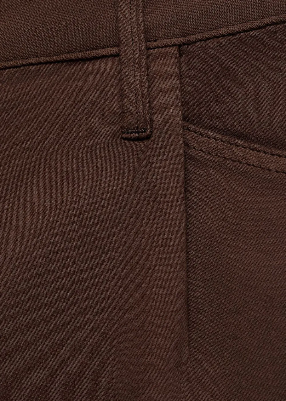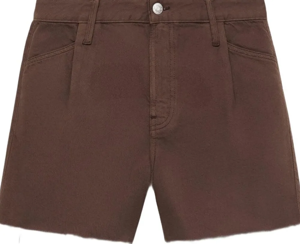 Denim-stil bomuldsstof, kort Design, mellemhøj talje, bæltestropper, jeans med bindelukning, lægdetaljer foran, flosset kant, knap- og lynlåslukning.