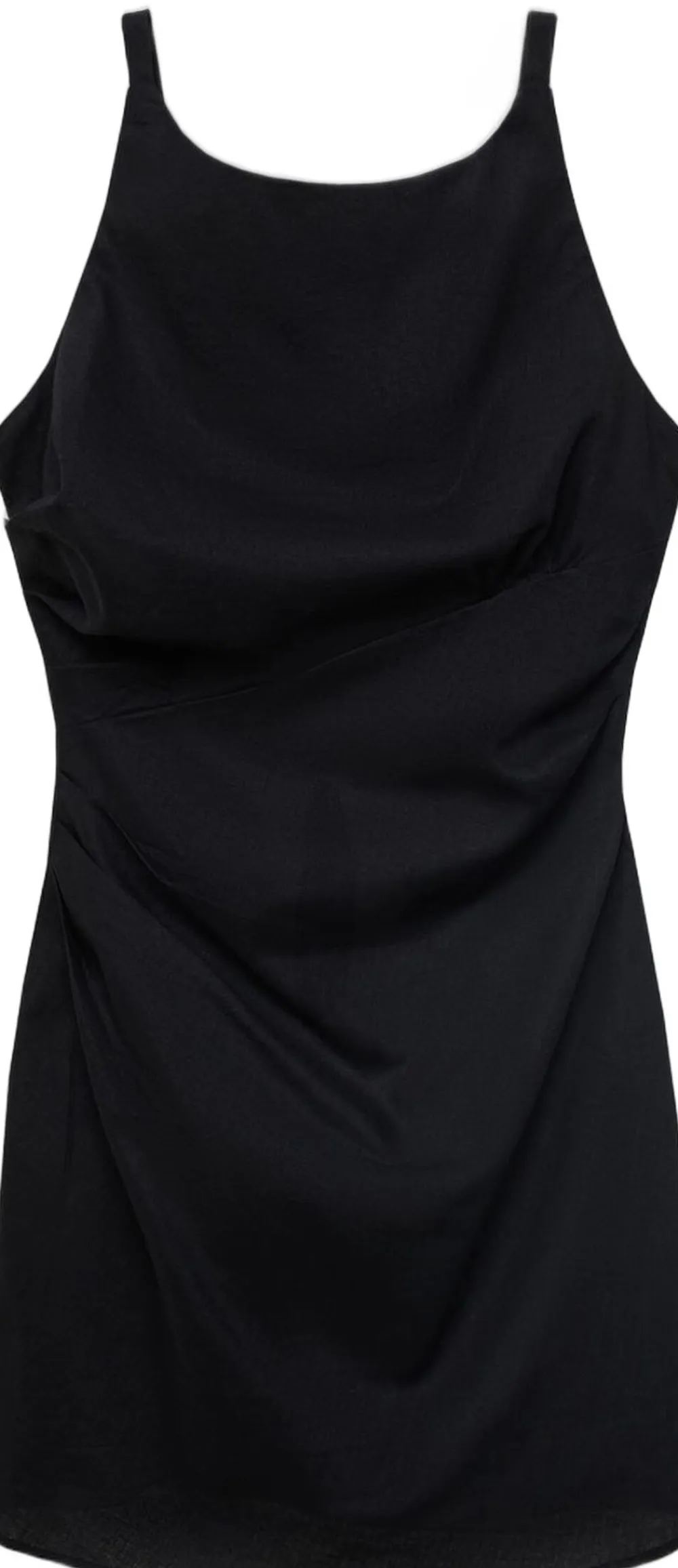Hør- og bomuldsblanding, kort Design, barbermaskinet Design, bådhals, ærmeløs, tynde justerbare stropper, lynlås i siden, indvendig foring, blå farve er en Exclusive online.