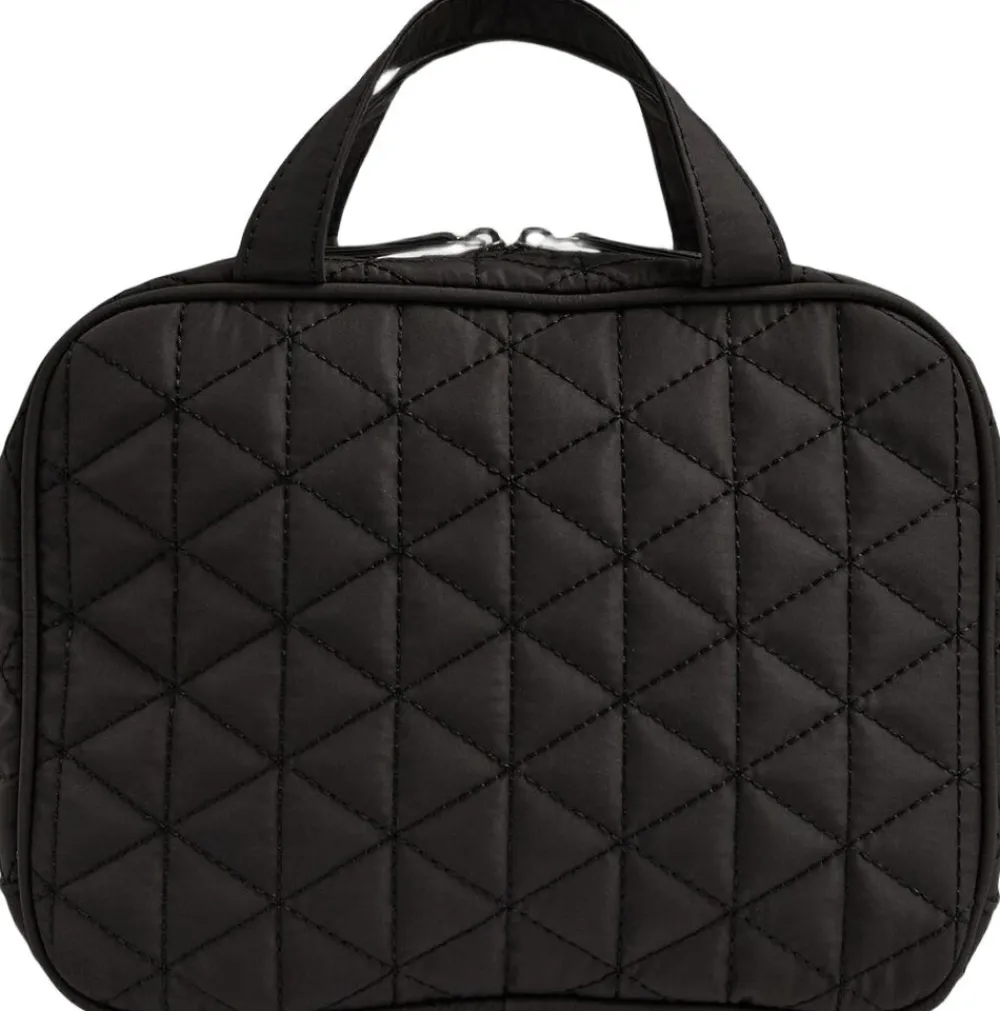 Discover Toiletry Bag i Quilt fra Markberg er den perfekte følgesvend til dine rejser. Denne stilfulde toilettaske er ikke blot praktisk, men også miljøvenlig, da den er fremstillet af 100% genanvendt polyester. Med et fokus på både funktionalitet og bæredygtighed, er denne toilettaske designet til at imødekomme alle dine behov, når du er på farten. Discover Toilettasken byder på ét rummelige hoved rum, der lukkes med lynlås fra begge sider, hvilket sikrer sikker opbevaring af dine essentielle toilettilbehør. Inden i rummet finder du smarte funktioner, såsom åbne netlommer i siden, samt en lille lynlåslomme i midten, for at adskille rummene ad. På forsiden af toilettasken er der en praktisk lynlåslomme. Tasken er udstyret med en praktisk hank, som gør den let at bære, uanset hvor dine rejser fører dig hen. Med målene 19 cm x 25 cm x 8 cm er den kompakt nok til at passe i din kuffert eller taske, men stadig rummelig nok til at opbevare alle dine nødvendigheder.