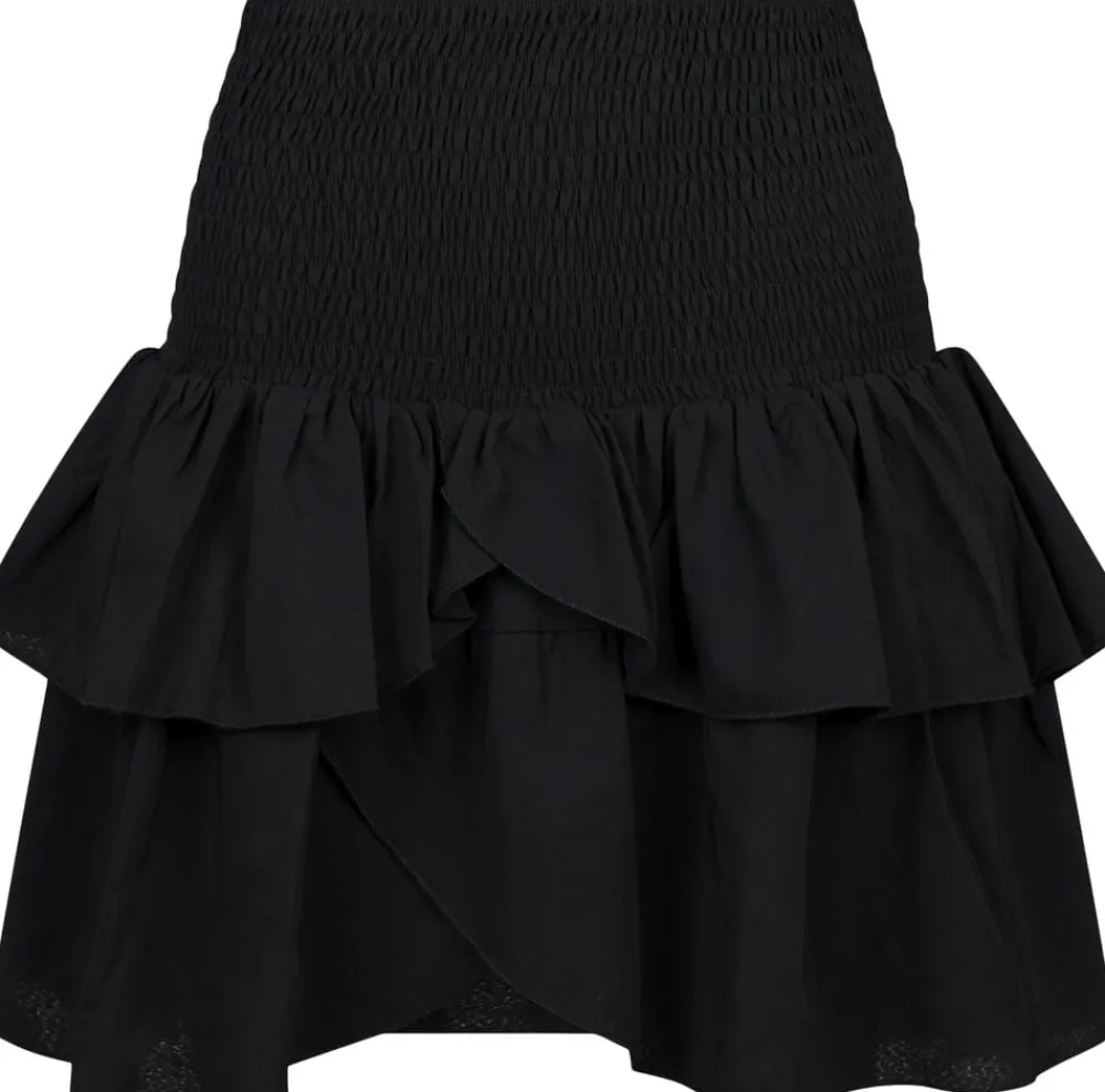 Kort nederdel med to lag flæser og en slids-detalje foran. Nederdelen har et bredt taljestykke i smock, der gør det muligt at placere nederdelen både lav- og højtaljet. Den har en almindelig pasform. Modellen er iført størrelse 36.