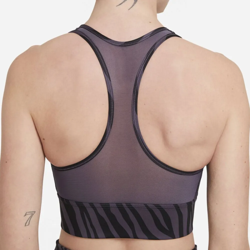 Opnå både stil og support med Nike Dri-FIT Swoosh Icon Clash Sports BH. Denne sports-BH er designet til medium support under intense træningspas som mellemdistance løb, fitness og træning. BH’en har det ikoniske Swoosh-logo foran og er lavet af åndbart, svedtransporterende Dri-FIT-materiale, der holder dig tør og komfortabel. Du kan justere pasformen med krog- og øjenlukning på ryggen og justerbare skulderstropper. Vælg Nike Dri-FIT Swoosh Icon Clash Sports BH for stilfuld og pålidelig support.