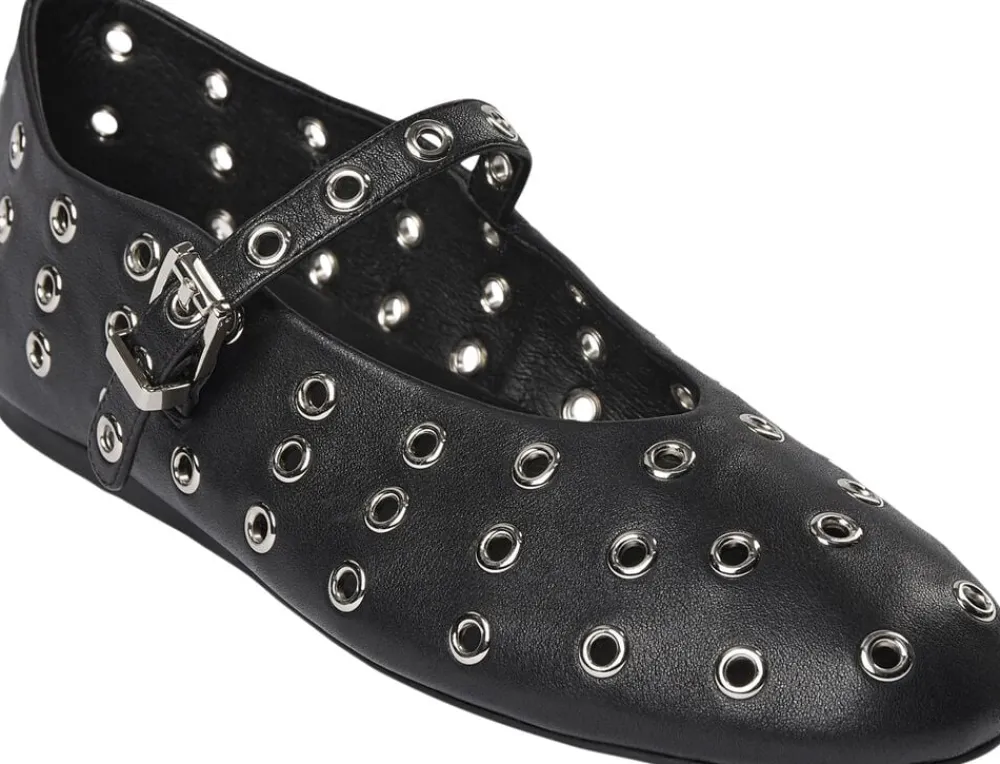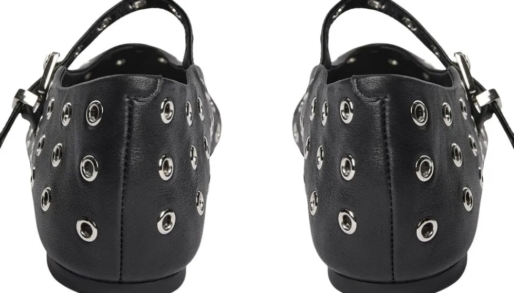 – Ballerinaerne er udsmykket med sølvnitter, der tilføjer et kantet og stilfuldt element til det klassiske Design.
