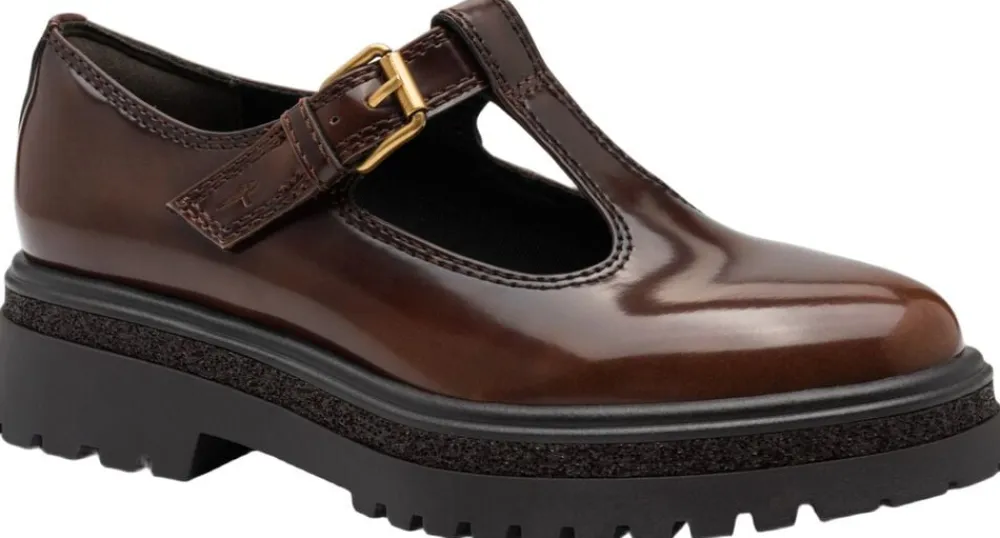 T- rems sko i muscat brun polido på en let profil sål med glimmer effekt som detalje. Lukningen er med velcro og snyde spænde