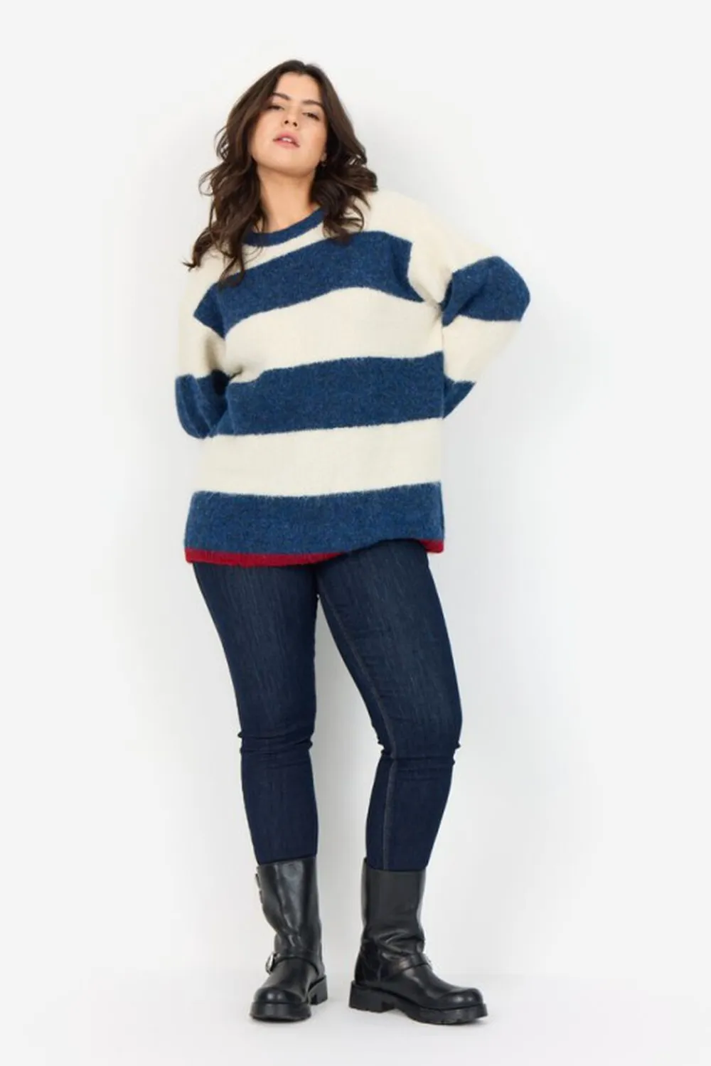 WA-JOLIE 1 Pullover er fremstillet af 59 % genbrugspolyester, 21 % nylon, 11 % polyester, 8 % uld og 1 % elastan. Den har vandrette striber, rund halsudskæring og ribbede manchetter. Brug den sammen med jeans eller over en kjole for et afslappet look.