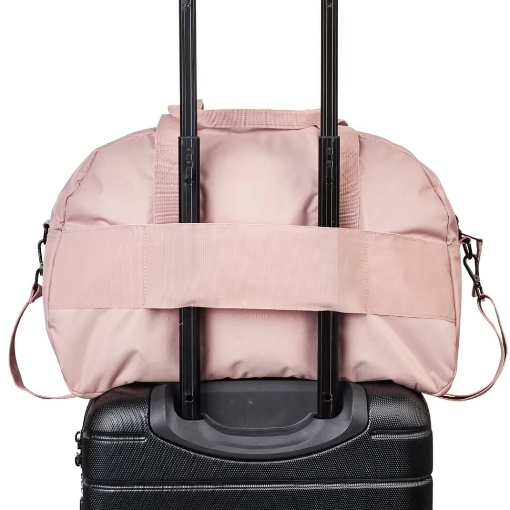 Denne funktionelle taske er perfekt til en getaway. Den er designet i et tonalt look, hvor både dens ydre stof og inderfor er lavet af 100% certificeret genanvendt materiale. I hovedrummet er der plads til en 13″ computer, og tasken har flere lommer, så du kan organisere dine sager. Tasken har både to kortere håndtag og en aftagelig og justerbar strop, så du kan bære den over skulderen og som crossbody. Den har også en strop bagpå, så tasken kan fastgøres til en kuffert.
