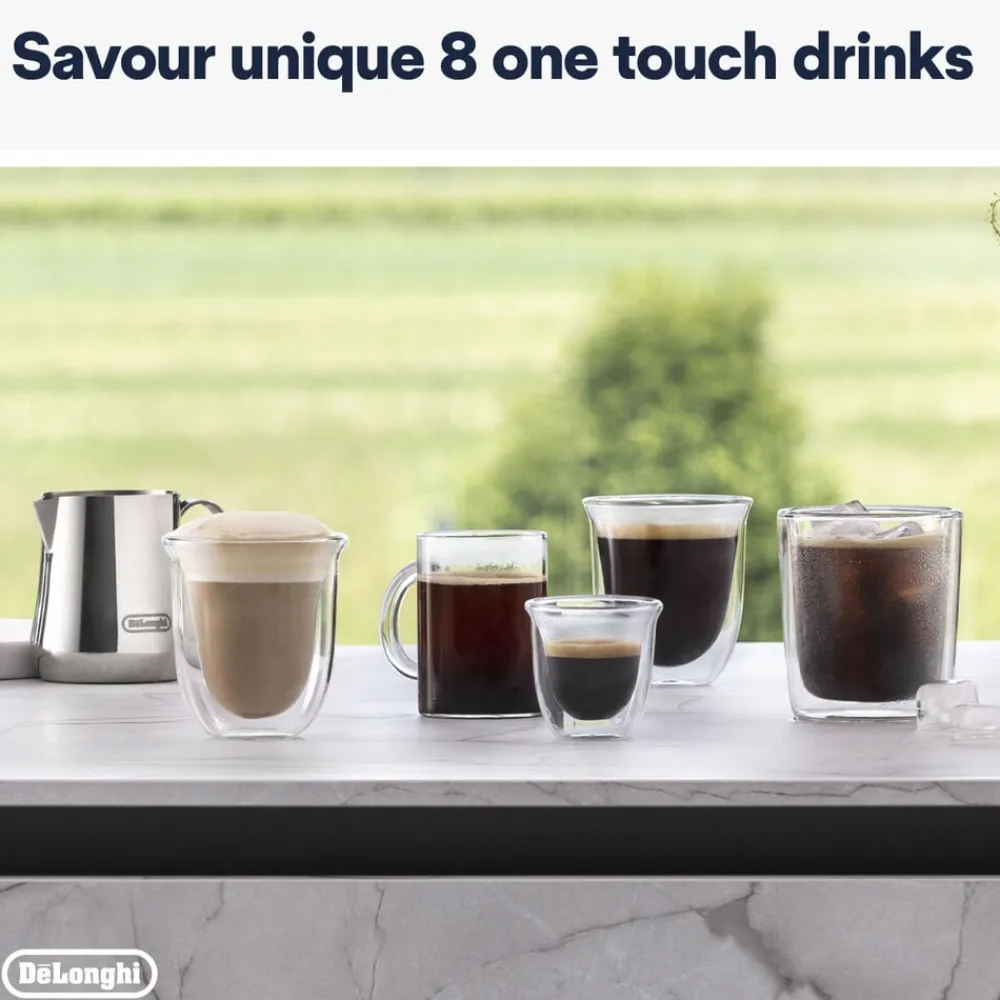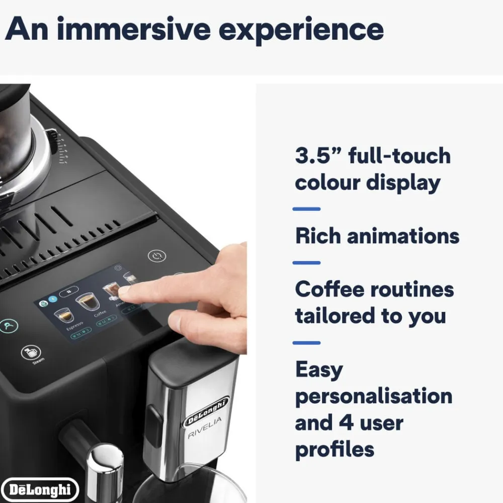 Dyk ned i kaffens univers med Rivelia og udforsk en mangfoldighed af bønnevarianter ved hjælp af Bean Switch System. Nyd en luksuriøs kaffeoplevelse gennem det 3,5″” fuld-touch farvedisplay, der præsenterer levende animationer og skræddersyede kafferutiner. Den kompakte maskine, med manuel mælkeskummer, skaber cremet skum og tilpasser sig din personlige stil.Bean Switch System åbner døren til uendelige kaffesmage, hvor Rivelia leveres med to udskiftelige tragte på 250 g, så du let kan variere dine kaffesensationer. Brug Skift-tilstanden før udskiftning for at tømme kværnen for de nuværende bønner. Vælg mellem at brygge en kop kaffe eller male bønnerne til side, og skab en rig kaffeoplevelse skræddersyet til dig.Nyd det intuitive 3,5″” fuld-touch farvedisplay med rige animationer, der lærer din kafferutine at kende og tilpasser din menu i løbet af dagen. Med op til 4 brugerprofiler giver Rivelia en personlig kaffeoplevelse. Bean Switch System gør det nemt at udforske forskellige bønner, mens Bean Adapt-teknologien tilpasser kværnegrad, kaffedosis og infusionstemperatur til dine valgte bønner.Mærk magien af 8 one-touch drikkevarianter via det intuitive display, og skab lækkert, cremet mælkeskum manuelt til at fuldende dine mælkebaserede drikke. Alt dette præsenteret i et elegant og kompakt design med bløde kanter, der oser af Sort Onyx.
