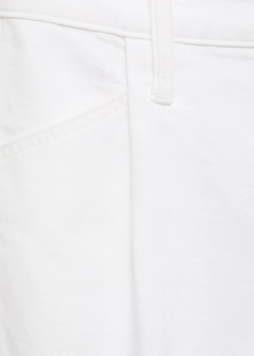 Denim-stil bomuldsstof, kort Design, mellemhøj talje, bæltestropper, jeans med bindelukning, lægdetaljer foran, flosset kant, knap- og lynlåslukning.