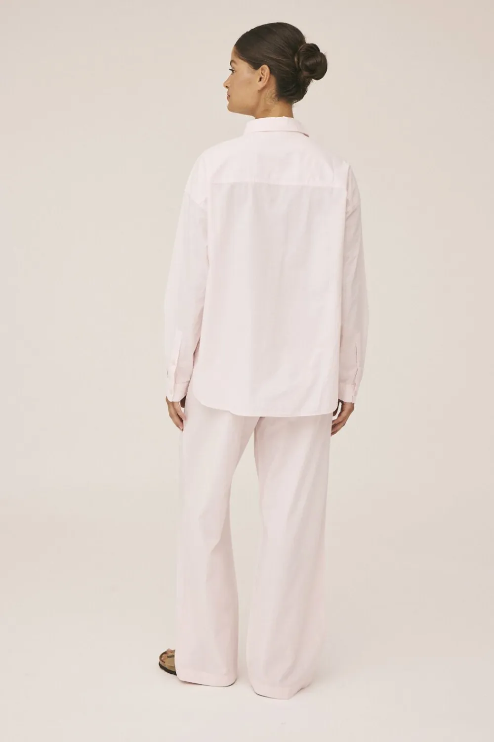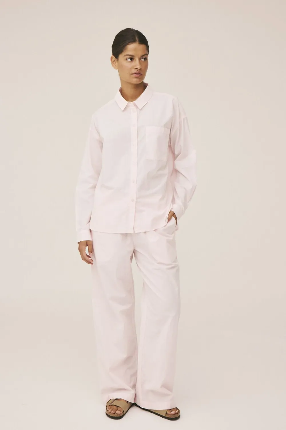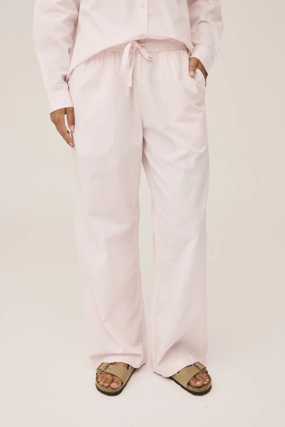 Bukser fra Magasin du Nord Collection i den blødeste kvalitet af 100% økologisk bomuld med GOTS-certificering. Bukserne er enkle i modellen med elastik og bindebånd i taljen, sidelommer, en enkelt baglomme samt lige bukseben med en løs pasform. Et par skønne bukser i en lækker kvalitet. Se også de andre fine styles i samme serie.