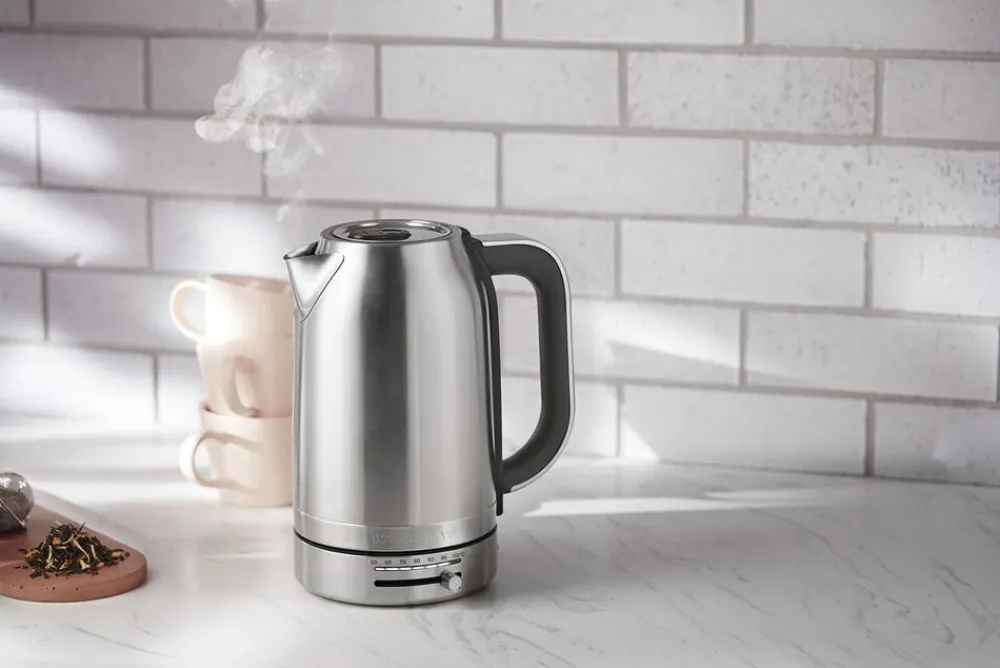KitchenAid Elkedel er en elegant og funktionel elkedel i farven Porcelain White, designet til at imødekomme dine behov i køkkenet. Denne elkedel har en kapacitet på 1,7 liter, hvilket gør den ideel til både daglig brug og når du har gæster. Elkedlen er udstyret med temperaturkontrol, der giver dig mulighed for at indstille vandtemperaturen fra 50 til 100 grader, så du kan tilberede din te eller kaffe præcist som du ønsker det. Den opretstående model sikrer, at elkedlen er nem at bruge og opbevare. KitchenAid Elkedel er ikke kun praktisk, men også stilfuld, hvilket gør den til et attraktivt element i dit køkken. Den er designet med fokus på brugervenlighed og funktionalitet, hvilket gør det nemt at koge vand hurtigt og effektivt. Elkedlen har en 2-års garanti, hvilket giver dig tryghed i dit køb. Uanset om du er en te- eller kaffeelsker, vil denne elkedel være et værdifuldt redskab i dit køkken. Den kombinerer moderne teknologi med et tidløst design, der passer ind i enhver indretning. Oplev den perfekte balance mellem stil og funktionalitet med KitchenAid Elkedel, der er ideel til både hverdag og særlige lejligheder.