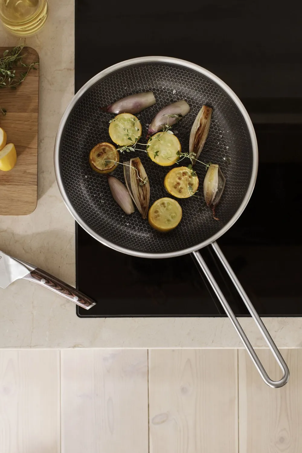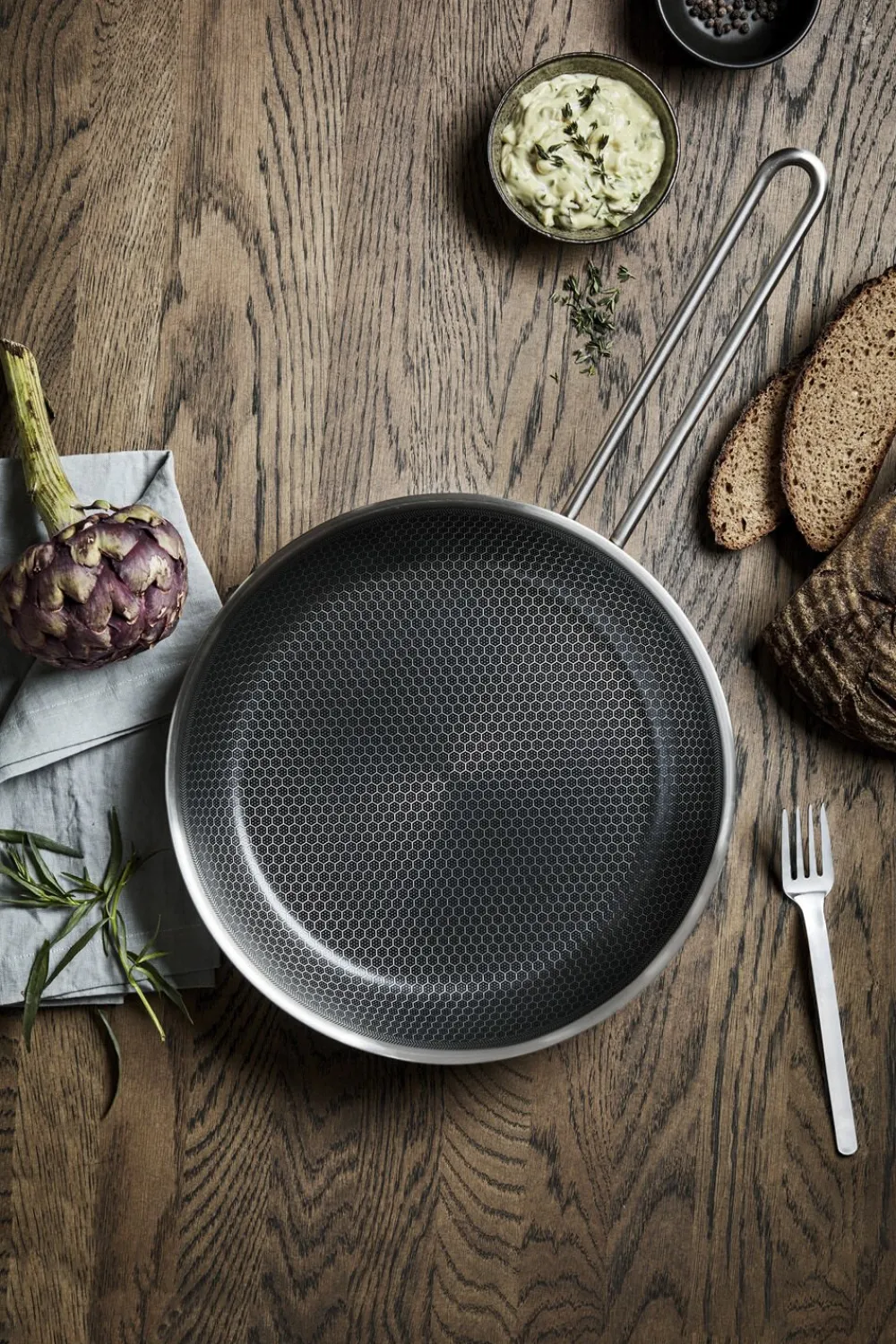Uundværlig allround stegepande med banebrydende keramisk belægning, der gør panden hårdfør i særklasse. Pandens unikke mosaikmønster i overfladen består af rustfrit stål i toppen og keramisk Slip-let® belægning i bunden og tåler brug af metalredskaber. Belægningen gør det muligt at reducere mængden af fedtstof, giver den perfekte stegeskorpe og gør rengøringen nem. Stegepandens multi-layer 3 lags teknologi sikrer optimal varmefordeling og en hård yderside modstår slid og brug. Brug panden til alt fra spejlæg til hakke- og plantebøffer. Stegepanden tåler en tur i ovnen op til 400° C og er velegnet til alle varmekilder, også induktion. Tåler maskinopvask og rengøring med stålsvamp. Belægning er fri for fluorstoffer.