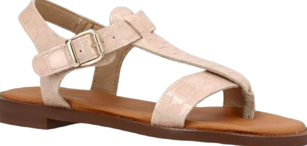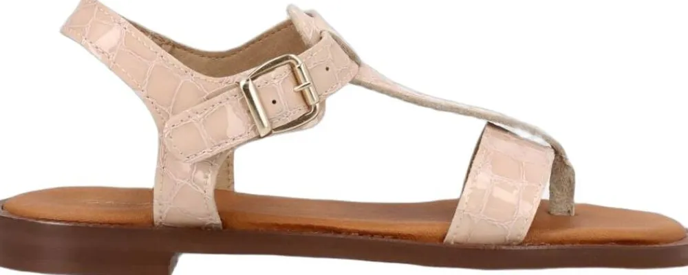 De flotte sandaler har et cool croco præg, som giver et råt touch til det stilrene design. De har en tåstrop foran, en rem der løber over foden samt en justerbar ankelrem, så de sidder super godt til på foden. Derudover kan de nemt tilpasses efter behov med den justerbare rem. Sandalerne er perfekte til hende med den klassiske stil, og kan nemt styles på et væld af måder.