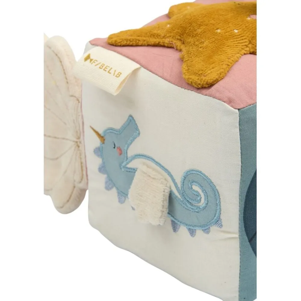 Fabelabs Fabric Cube er et sjovt legetøj til babyer. En perfekt legetøj til farten, der kan spændes fast på klapvognen, ved siden af sengen eller bilens barnesæde, så din lille kan udforske de forskellige smukke farver, teksturer og former. Fabelabs Fabric cube indeholder mange aktiviteter, der stimulerer babyens sanser! Kuben hjælper dit lille barn med at udvikle sanser og færdigheder, og den er den perfekte størrelse til en lille hånd. Anbefalet alder: 0m+ EU-legetøjssikkerhedstandard – CE