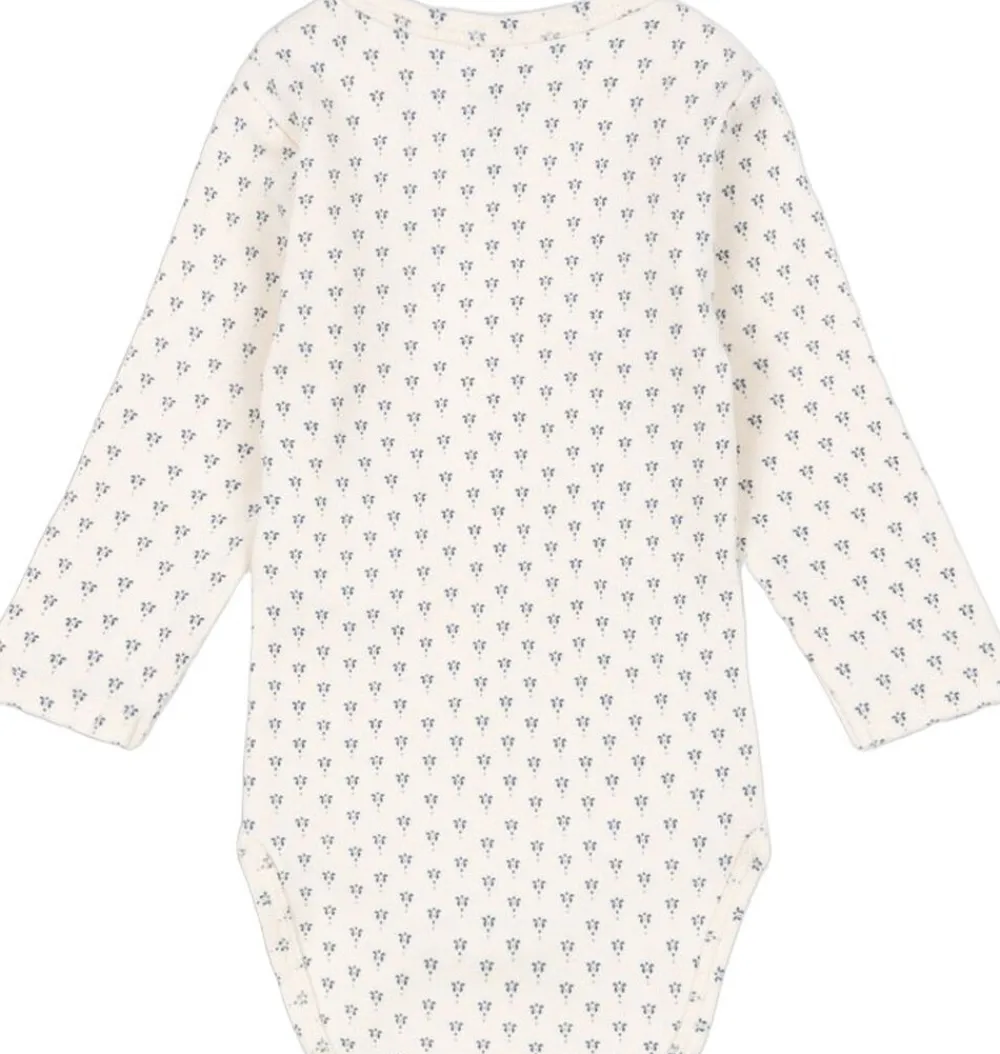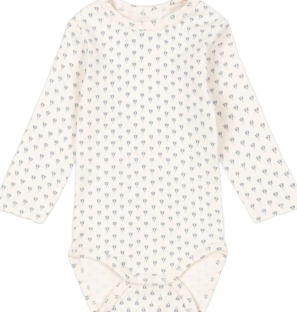 Denne bodysuit i økologisk bomuld er en blød, strækbar og utroligt behagelig musthave i din babys garderobe. Designet med en klassisk ribstrikket hals og trykknapper ved skulderen for nem påklædning