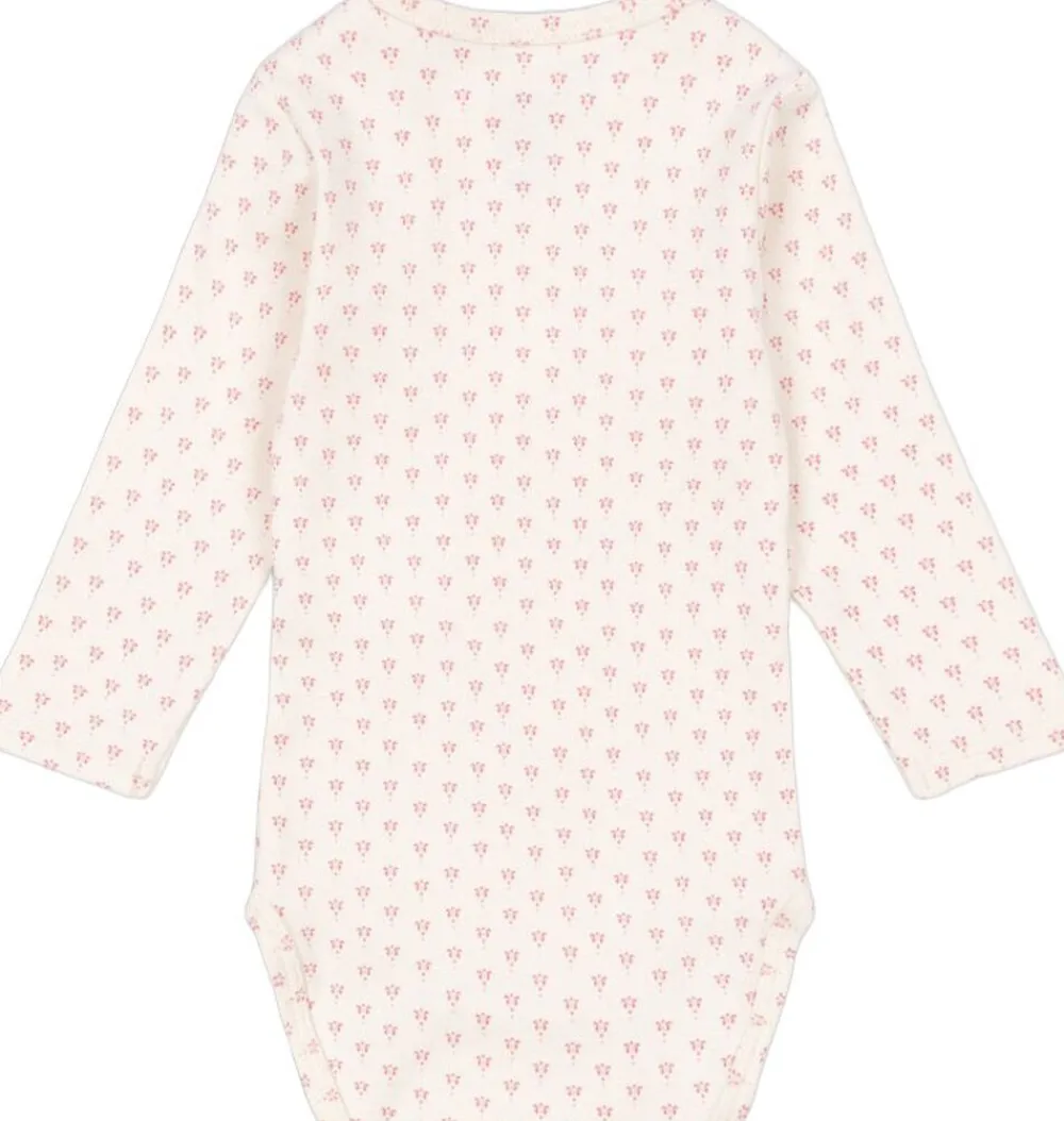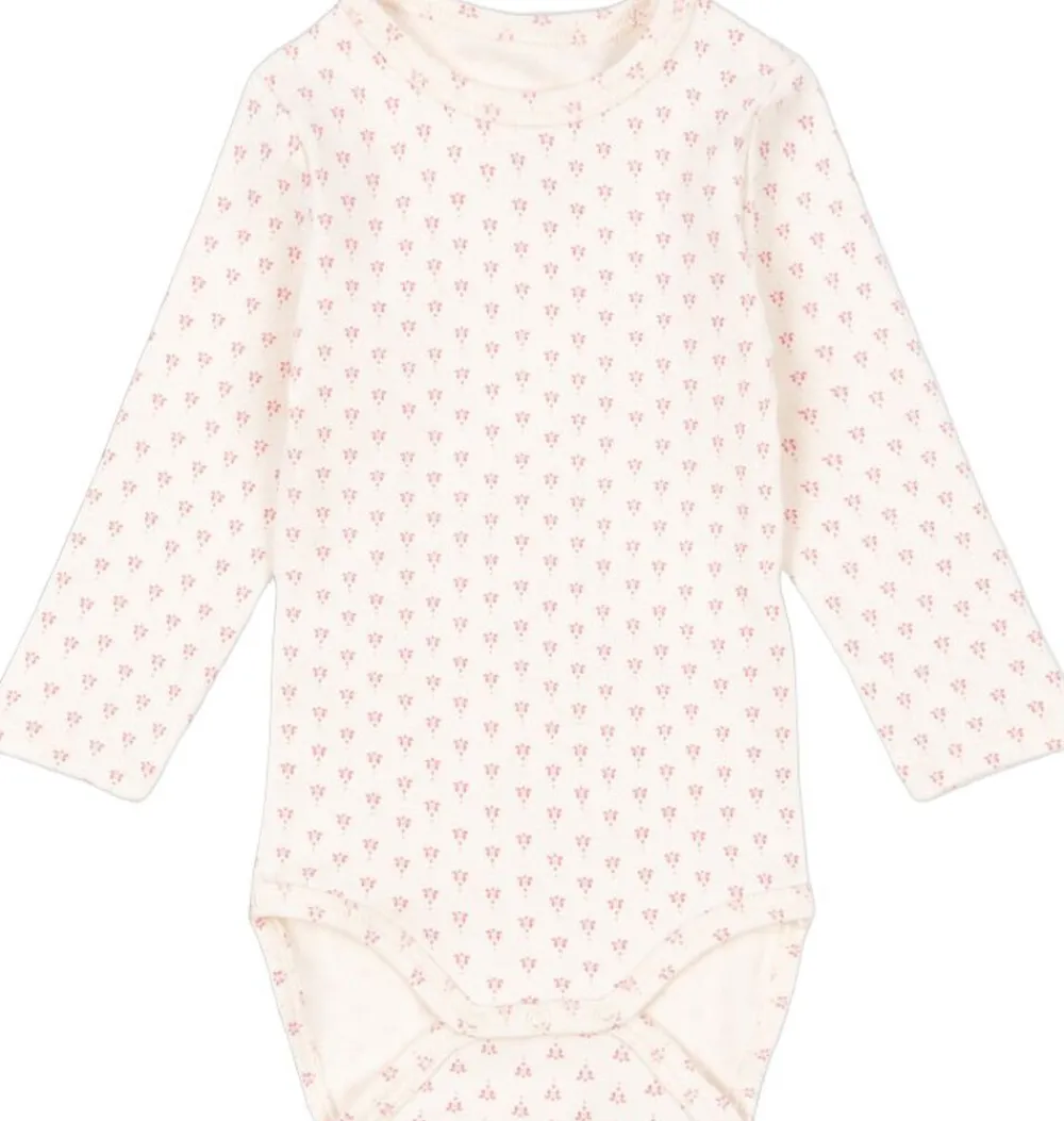 Denne bodysuit i økologisk bomuld er en blød, strækbar og utroligt behagelig musthave i din babys garderobe. Designet med en klassisk ribstrikket hals og trykknapper ved skulderen for nem påklædning